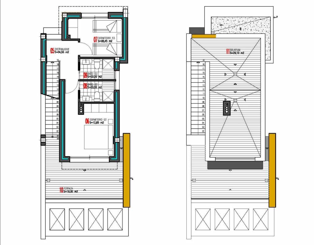 De villa's hebben 3 slaapkamers en 3 badkamers, verdeeld over twee verdiepingen, plus een privébalkon. Elke villa heeft een privézwembad en vloerverwarming op basis van aerothermische energie, wat het hele jaar door comfort en energie-efficiëntie biedt. Deze woningen zijn ideaal voor mensen die op zoek zijn naar privacy, ruimte en een premium levensstijl dicht bij het strand.