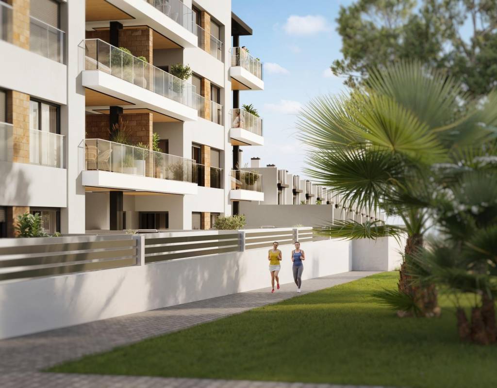 De appartementen hebben 2 slaapkamers en 2 badkamers, waaronder een hoofdslaapkamer met eigen badkamer. De appartementen op de begane grond hebben een eigen tuin, terwijl de appartementen op de middelste verdiepingen en de penthouses beschikken over royale terrassen die perfect zijn om buiten te eten en te ontspannen. Alle appartementenblokken zijn uitgerust met liften, wat comfort en toegankelijkheid voor alle bewoners garandeert.