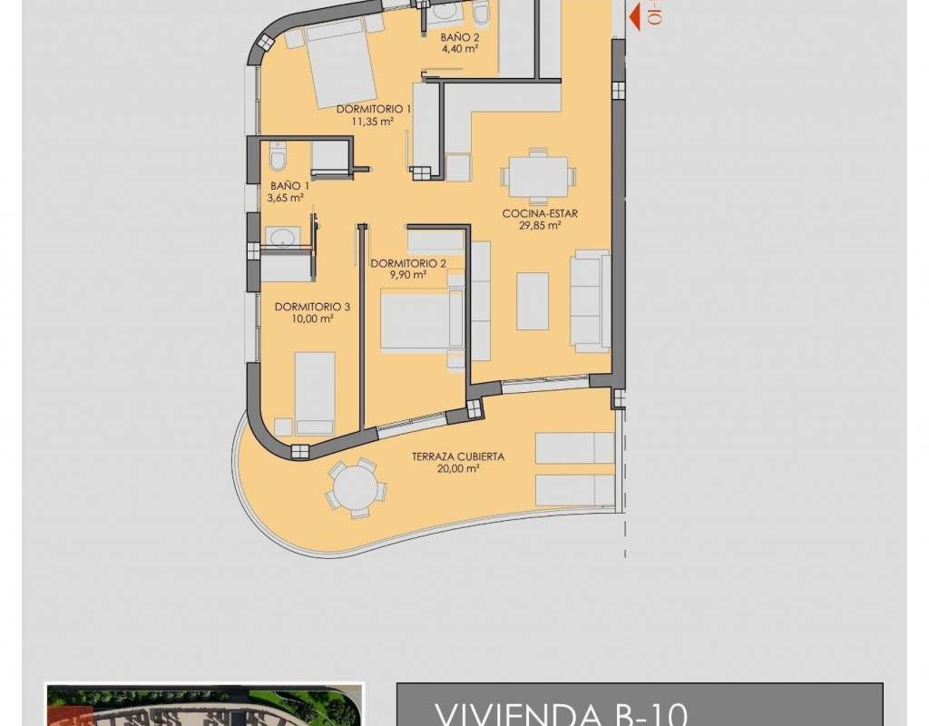 Het project biedt stijlvolle appartementen met twee of drie slaapkamers, allemaal met twee badkamers, waaronder een en suite. Elke woning is ontworpen om optimaal te kunnen genieten van het buitenleven, een belangrijk onderdeel van het leven aan de Costa Calida.