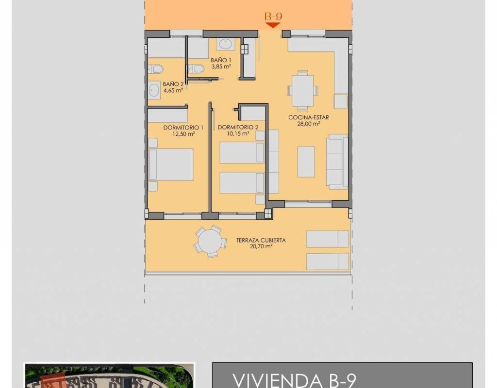 Het project biedt stijlvolle appartementen met twee of drie slaapkamers, allemaal met twee badkamers, waaronder een en suite. Elke woning is ontworpen om optimaal te kunnen genieten van het buitenleven, een belangrijk onderdeel van het leven aan de Costa Calida.