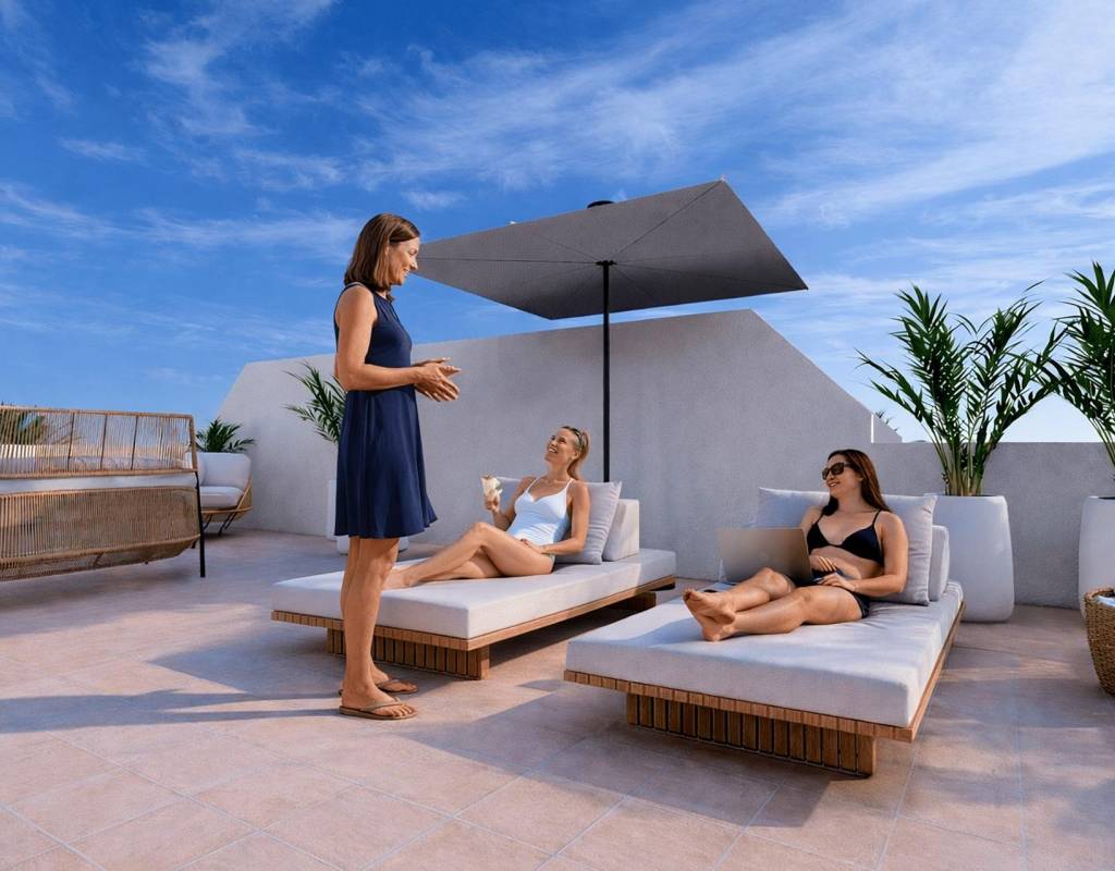 Appartementen op de begane grond en de eerste verdieping beschikken over grote privéterras, perfect om buiten te dineren en te ontspannen. Woningen op de bovenste verdieping profiteren van royale privésolariums, compleet met een zomerkeuken, die een ideale ruimte bieden om het hele jaar door van de zon te genieten.