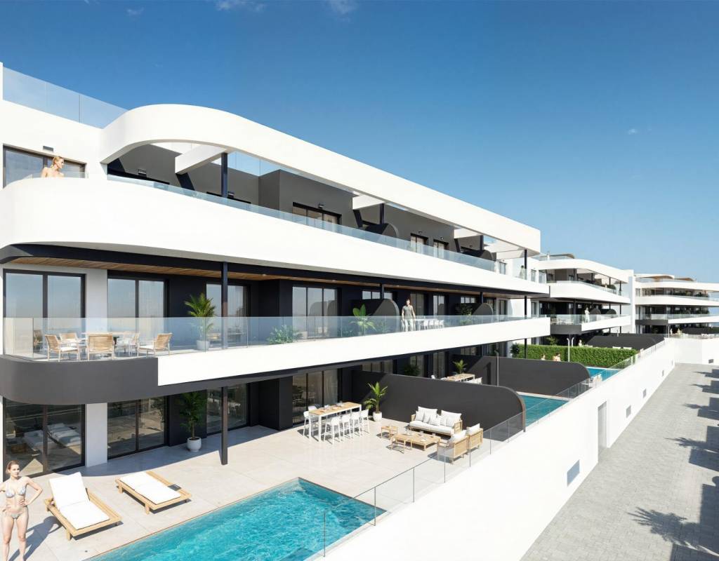 Appartementen op de begane grond beschikken over ruime terrassen met de mogelijkheid om een privézwembad toe te voegen. Woningen op de tussenverdiepingen bieden royale buitenterrassen, terwijl penthouses zijn voorzien van privé-zonneterrassen die ideaal zijn om te zonnen en buiten te dineren.