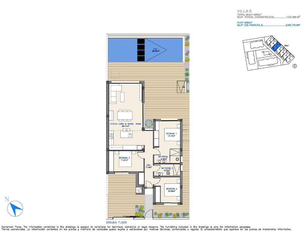 Daarnaast omvat het project 7 exclusieve gelijkvloerse villa's met 3 slaapkamers, elk met een privézwembad en een uitstekende ligging direct aan de golfbaan.