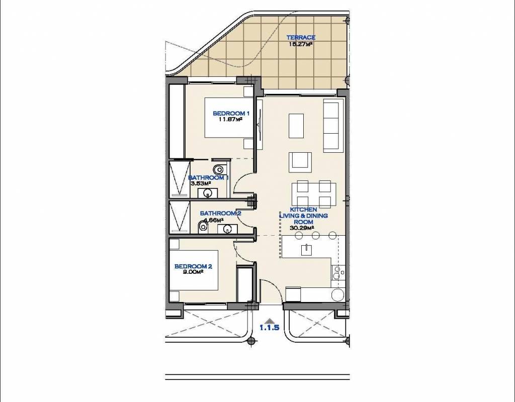 - Terrace: 15 Msq.
