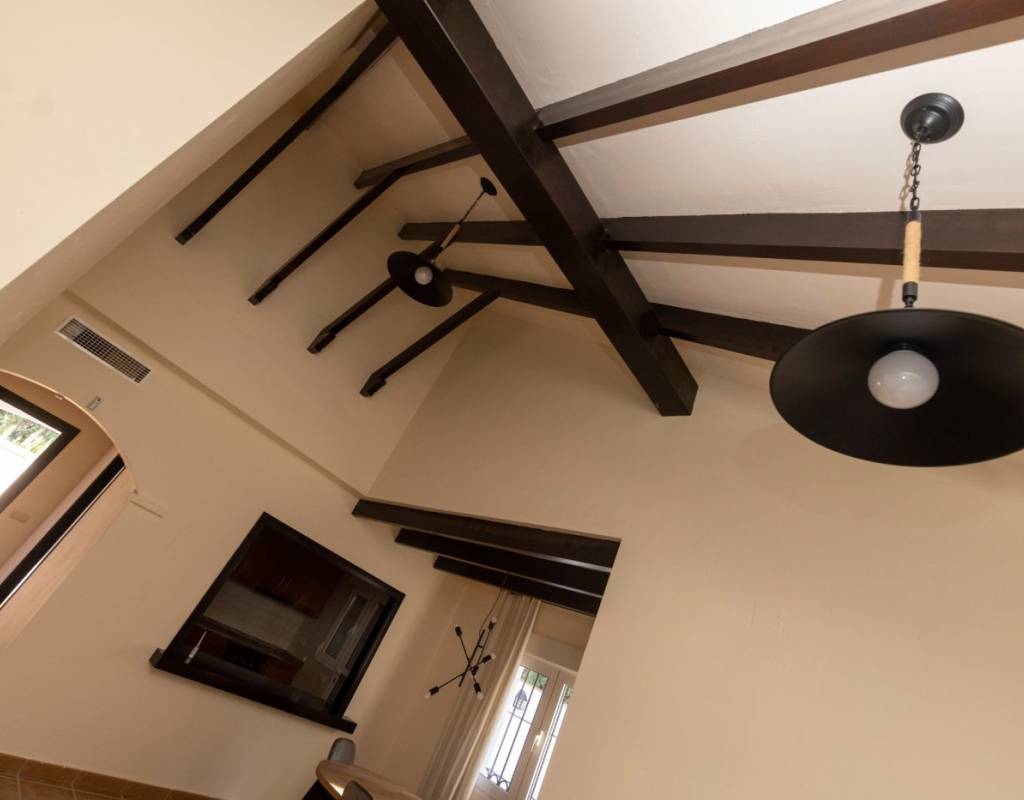 Denne uvanlige designvillaen har 3 soverom og 2 bad, uavhengig kjøkken, stue med terrassedører som leder ut til den overbygde verandaen.