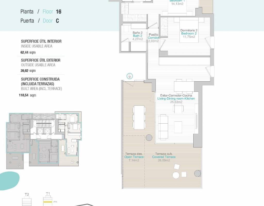 To tårn på 18 etasjer med flotte leiligheter med utsikt over havet og saltsjøen i Calpe.