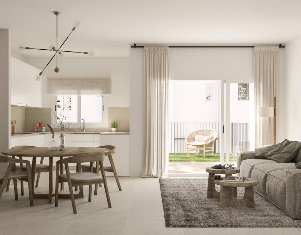Romslige leiligheter med 3 soverom, 2 bad og 1 toalett. Alle eiendommene har en privat hage på tomten, et solarium og en privat garasje.