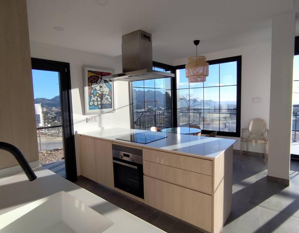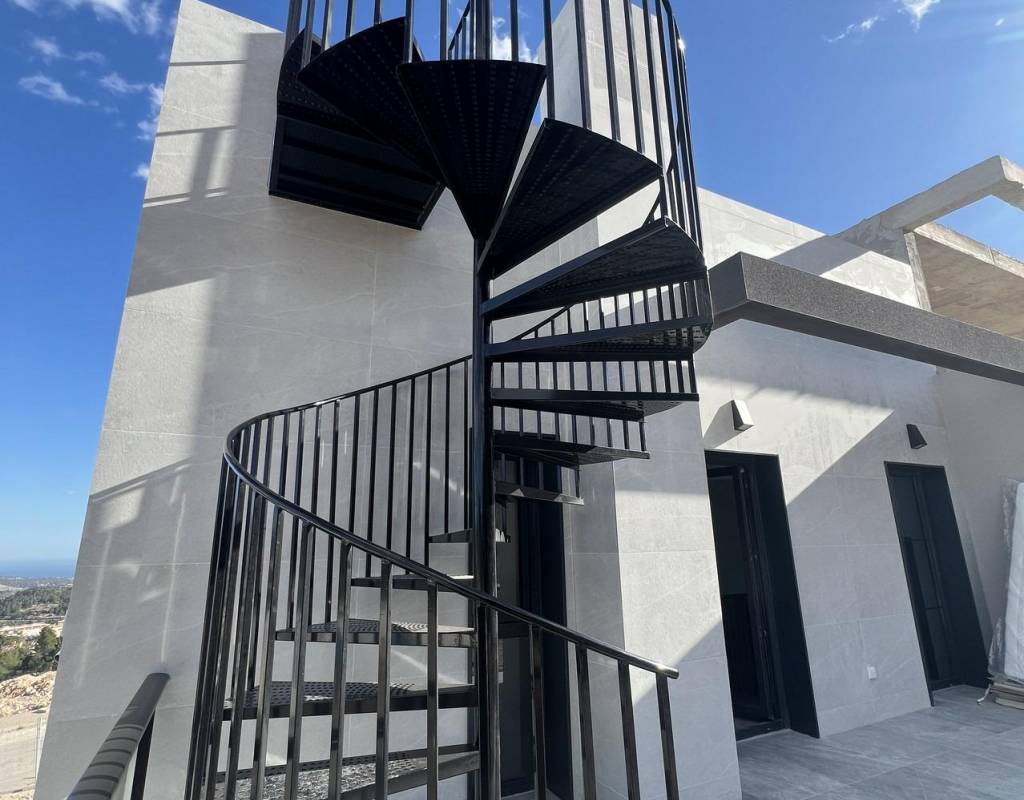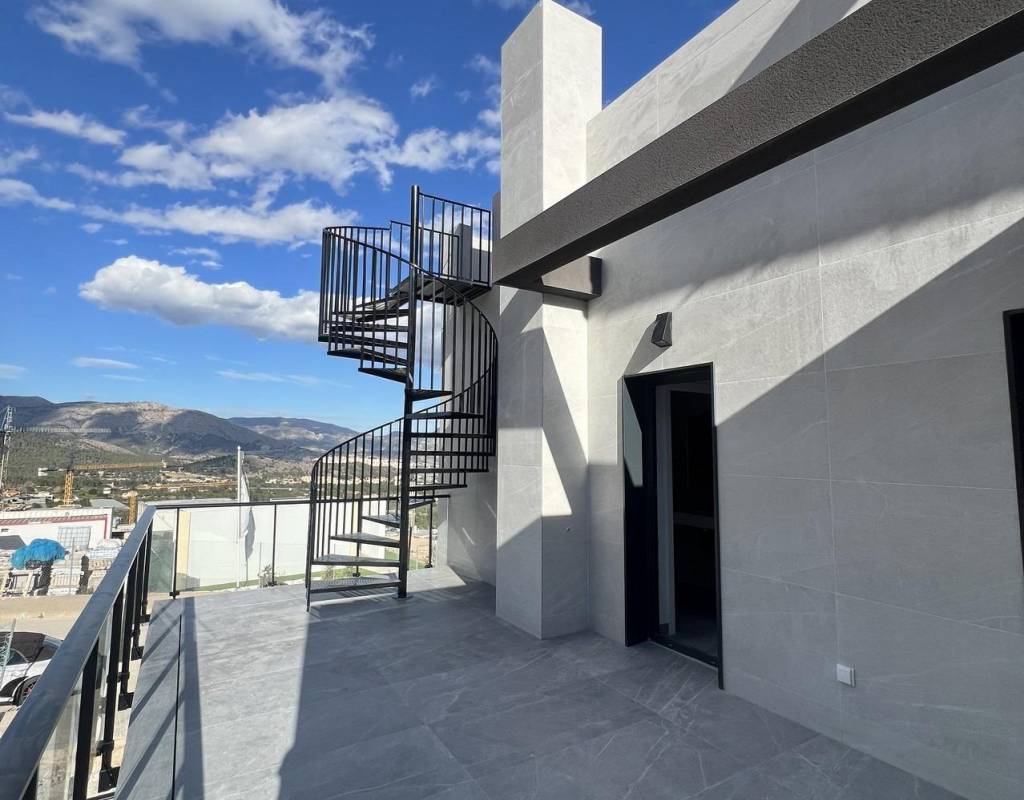 Nybygde moderne rekkehus og tomannsboliger med flere terrasser og solarium, helt inngjerdet, med parkeringsplass for biler og privat svømmebasseng i Polop.