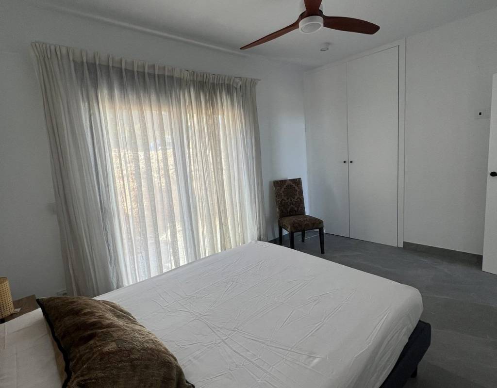 Kjøkkenet er utstyrt med underskap og benkeplater i silestone, keramisk komfyr, stekeovn, avtrekksvifte, kjøleskap, vaskemaskin, oppvaskmaskin og aerotermisk varmeapparat.