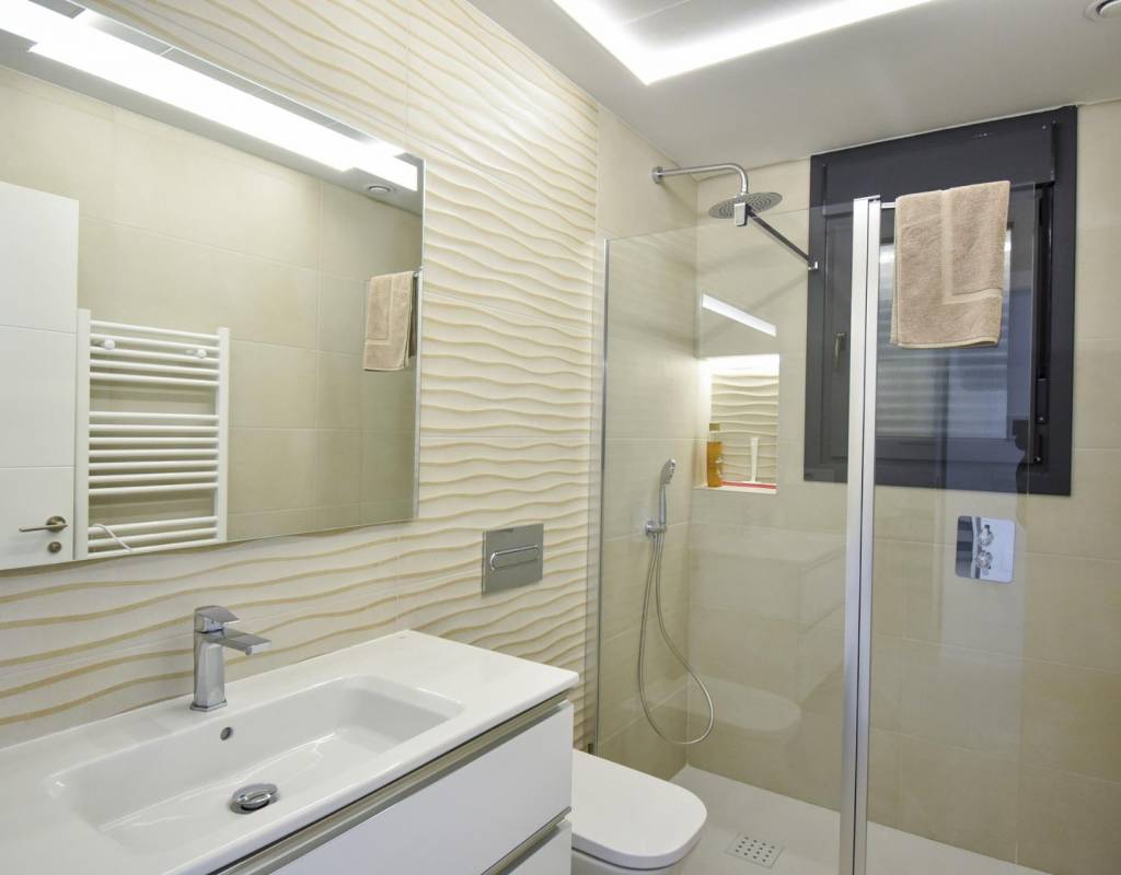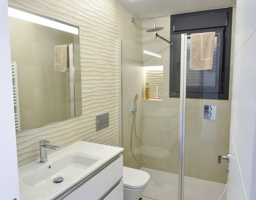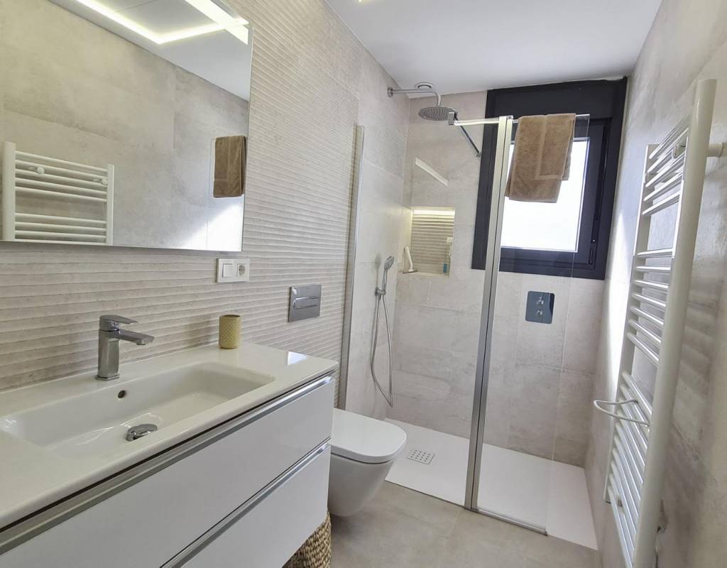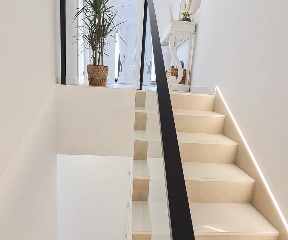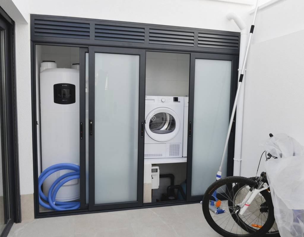 Store vinduer i stuen gir direkte tilgang til bassengområdet og sørger for et naturlig lysinnslipp. Energieffektive tillegg som solcellepaneler og forhåndsinstallert luftkondisjonering med kanaler sørger for moderne komfort og bærekraft. Balay-apparater (induksjonstopp, stekeovn, mikrobølgeovn, avtrekksvifte, kjøleskap, integrert oppvaskmaskin og vaskemaskin) gjør det enkelt å flytte inn.