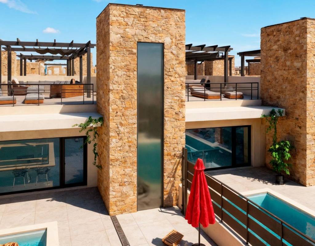 Nybygget boligområde med villaer og rekkehus i Fuente Álamo, Murcia.