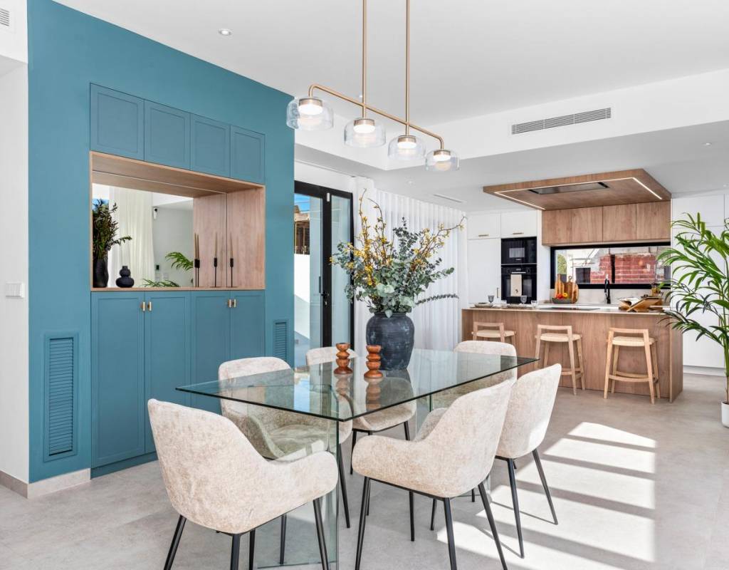 Moderne villaer bygget over 3 etasjer, har 3 soverom, 3 bad, gjestetoalett, moderne kjøkken med åpen planløsning og stor stue/spisestue med direkte utgang til terrasse med basseng, garderober, kjeller med garasje og bod, klimaanlegg, hvitevarer.
