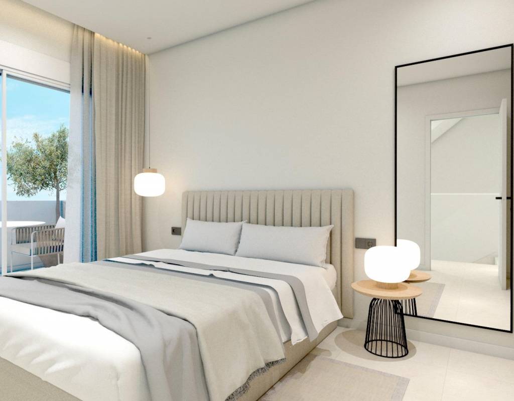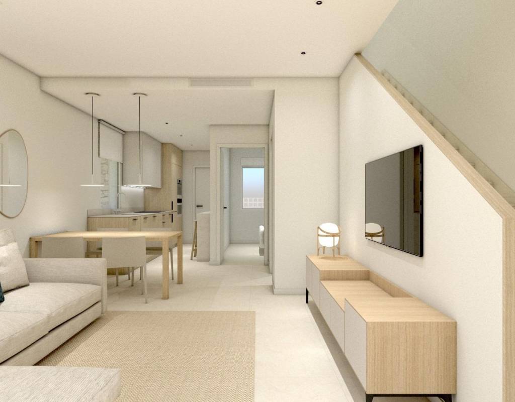 Nybygget villa i boligkompleks med felles svømmebasseng i Torre de la Horadada som ligger 800 meter fra stranden.