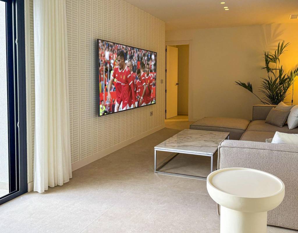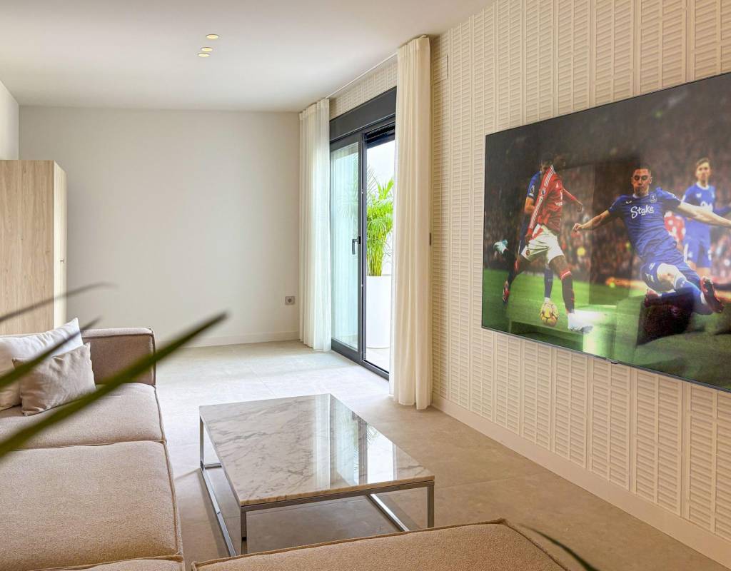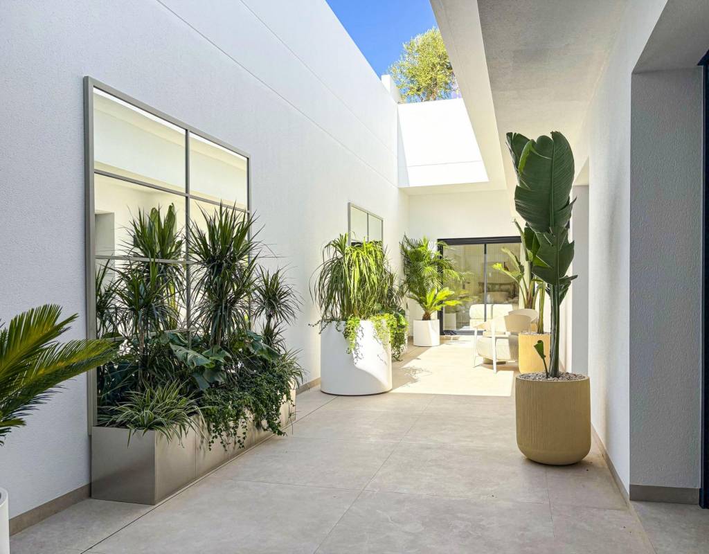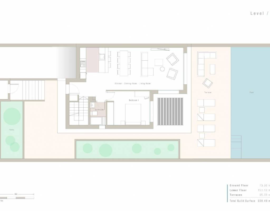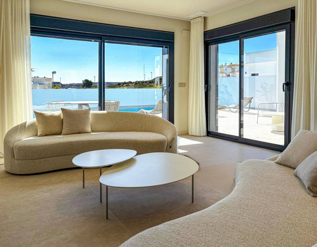 Villaen har 4 soverom, med mulighet for å lage et femte soverom eller en ekstra stue, slik at den passer perfekt til din livsstil. I hovedetasjen finner du en åpen stue og spisestue som er koblet til et moderne, fullt utstyrt kjøkken med toppmoderne hvitevarer, og som skaper en kontinuerlig flyt mot terrassen og bassengområdet, ideelt for å underholde eller slappe av utendørs.