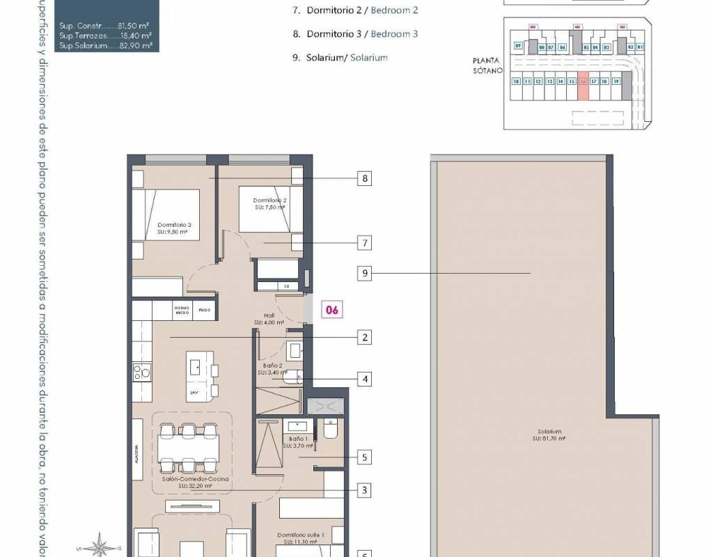 Prosjektet tilbyr romslige leiligheter med tre soverom og to bad, hvorav ett er en-suite. Kjøpere kan velge mellom leiligheter i første etasje med store terrasser og private hager, leiligheter i mellomste etasje med romslige terrasser eller penthouse-leiligheter med terrasse og privat solarium. Solariet er forberedt for installasjon av et sommerkjøkken, perfekt for å nyte det middelhavske klimaet.