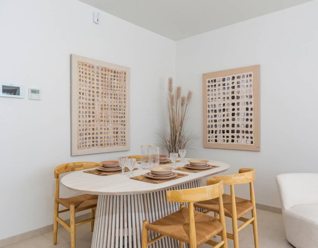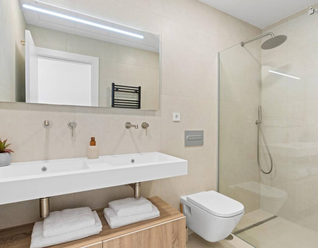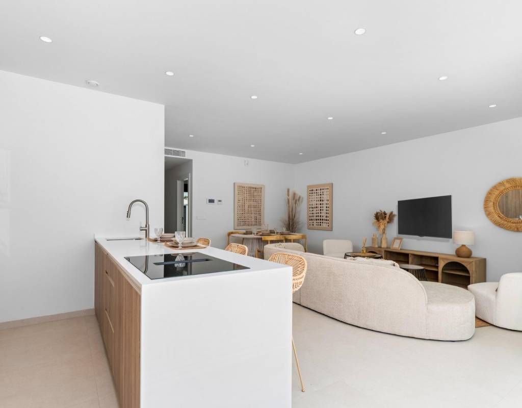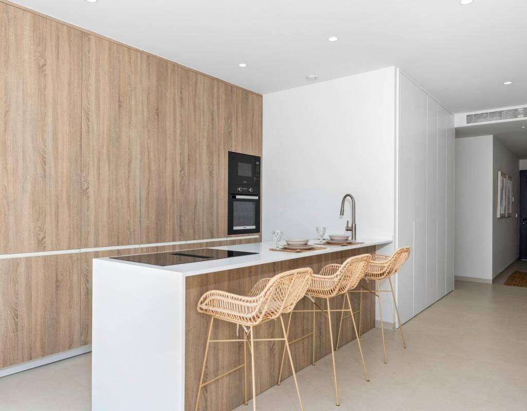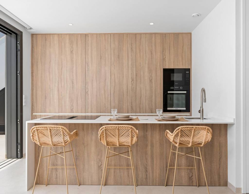 Disse villaene er bygget med materialer av høy kvalitet og utstyrt med moderne funksjoner. De fullt utstyrte kjøkkenene er tilgjengelige i hvit høyglans eller trefinish og inkluderer benkeplater i kvarts, vask i rustfritt stål, induksjonstopp med integrert avtrekk, stekeovn, mikrobølgeovn, vaskemaskin, integrert kjøleskap og oppvaskmaskin. Badene er utstyrt med møbler, speil, belysning og elektriske håndklestørkere. Ytterligere funksjoner inkluderer elektriske persienner i soverommene, LED-belysning i hele eiendommen og et komplett kanalisert klimaanlegg fra Fujitsu.