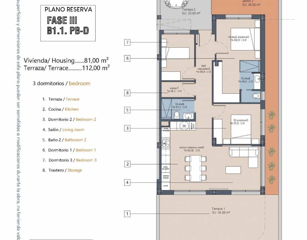 Utbyggingen består av 29 moderne boliger med 2 eller 3 soverom, designet med rene arkitektoniske linjer og høykvalitets finish. Kjøpere kan velge mellom leiligheter i første etasje med privat hage og terrasse, leiligheter i midtre etasje med romslige terrasser eller penthouse-leiligheter med privat terrasse og solarium på taket med åpen utsikt. Mange av eiendommene har utsikt mot Serena Golf og Mar Menor, noe som skaper et rolig og behagelig bomiljø.