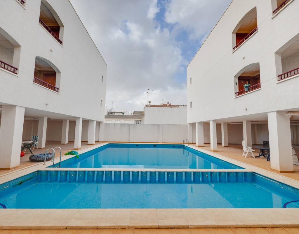 I sentrum av boligkomplekset kan beboerne nyte et felles svømmebasseng, perfekt for å slappe av i de varme middelhavsmånedene.