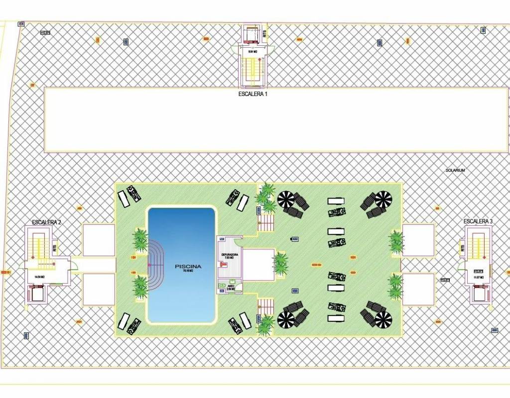 På taket venter et imponerende fritidsområde på 350 m2. Dette området inkluderer et 70 m2 stort svømmebasseng med et separat barnebasseng, pergolaer, solsenger og skyggefulle områder, slik at beboerne kan slappe av mens de nyter panoramautsikten. Taket er lett tilgjengelig med en av de tre heisene og inkluderer sanitæranlegg for ekstra komfort.