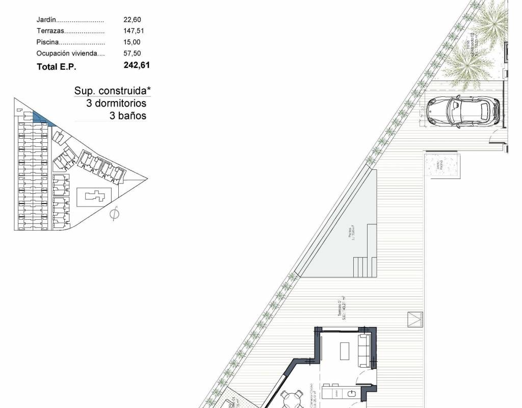 Hver eiendom har en privat tomt med eget svømmebasseng, noe som skaper det perfekte miljøet for å nyte middelhavsklimaet hele året. Boligene har 3 soverom og 2 eller 3 bad pluss gjestetoaletter, og tilbyr komfortable og funksjonelle oppholdsrom som er ideelle for familier eller gjester.
