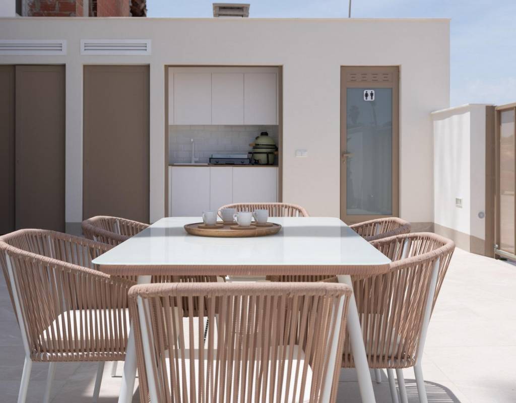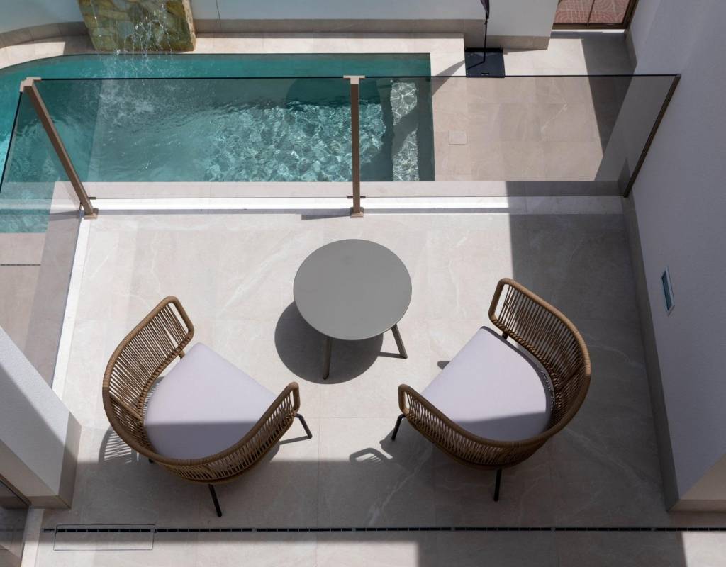 Villaene er designet for å fremheve utendørs oppholdsrom. Ved siden av bassenget er det en grillplass og et utvendig gjestetoalett, perfekt for å underholde venner og familie. Solterrassen på taket gir ekstra plass til å slappe av i solen og har en soldusj med forhåndsinstallert jacuzzi og sommerkjøkken.