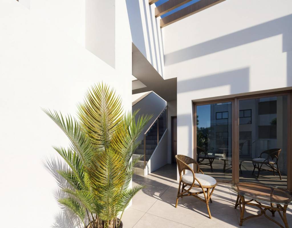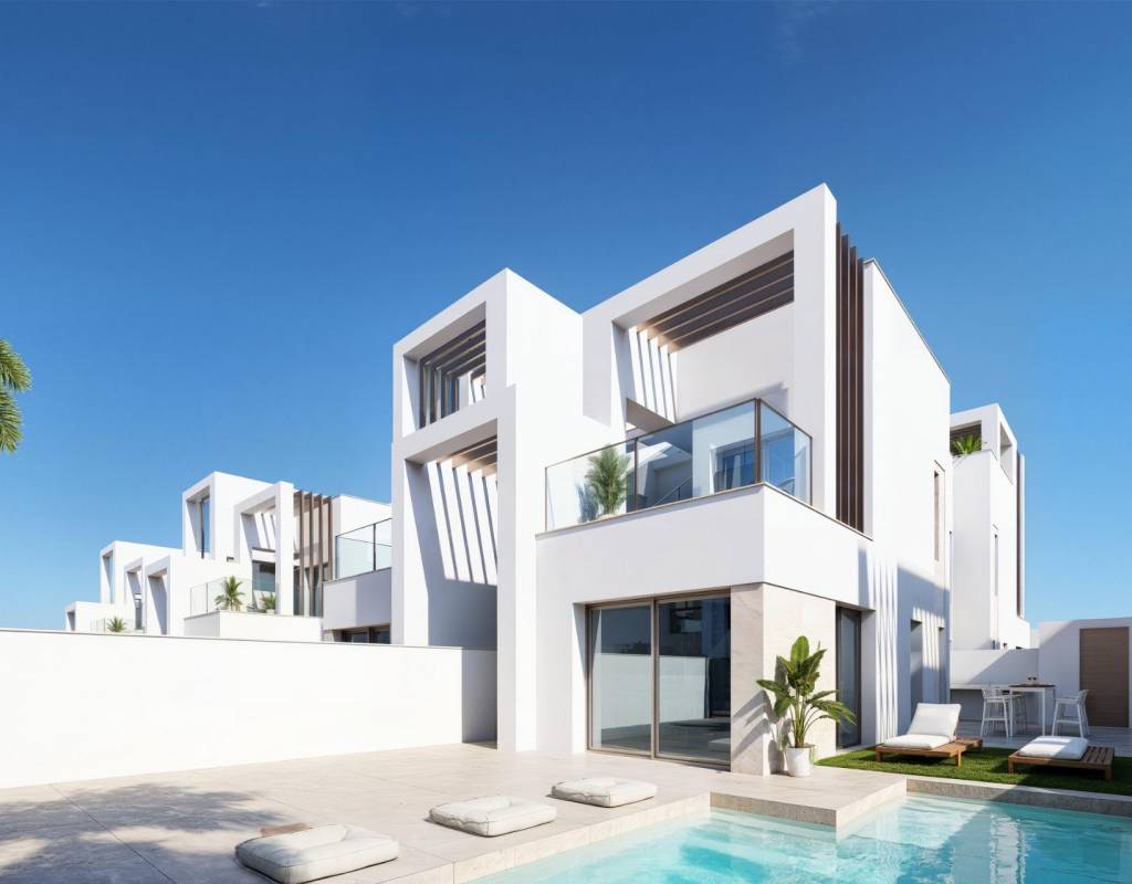 Oppdag et eksklusivt boutique-prosjekt med 37 moderne villaer i firkantet og tomannsboligstil, beliggende ved La Serena Golf i Los Alcazares på den vakre Costa Calida. Disse moderne boligene er designet for kjøpere som søker privatliv, sol og en utendørs livsstil, bare 300 meter fra det varme vannet i Mar Menor.