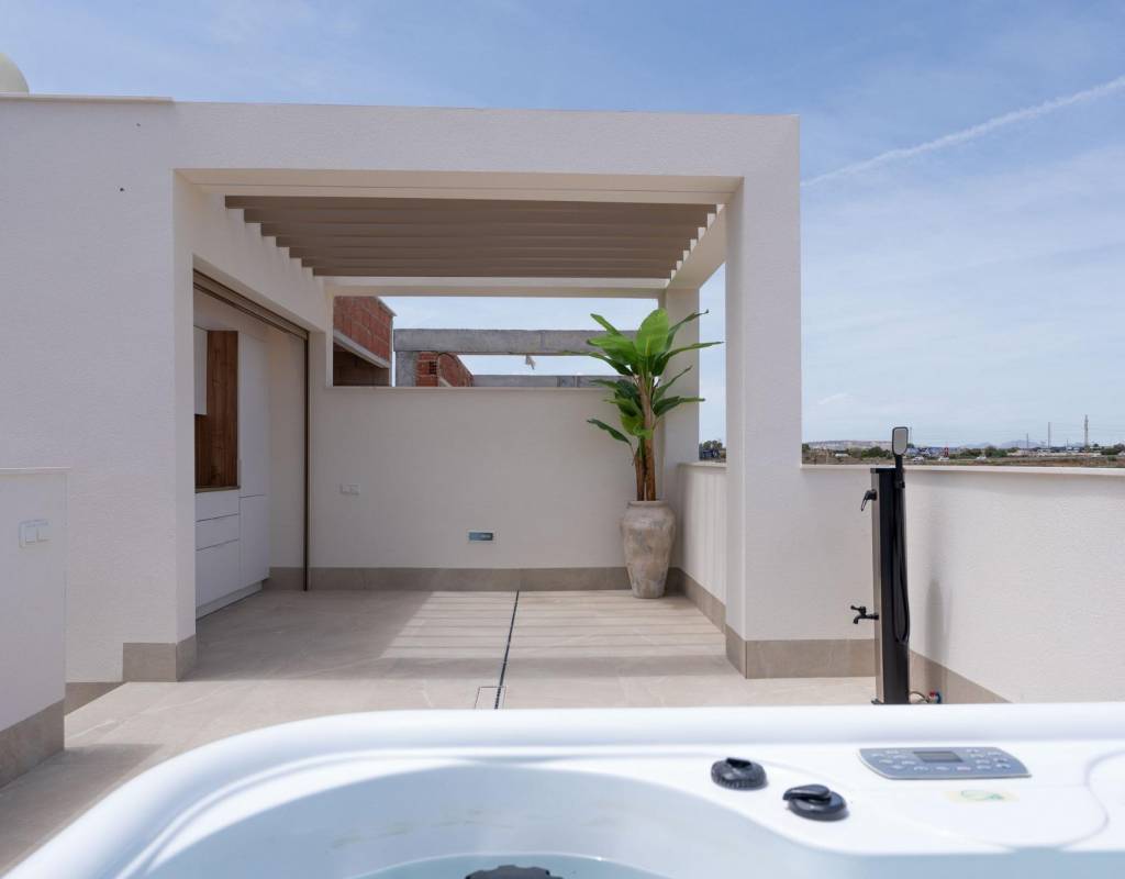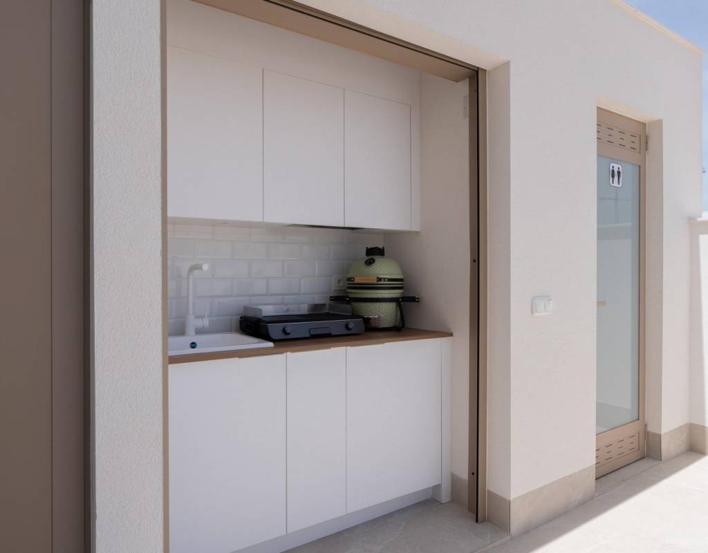 Villaene er designet for å fremheve utendørs oppholdsrom. Ved siden av bassenget er det en grillplass og et utvendig gjestetoalett, perfekt for å underholde venner og familie. Solterrassen på taket gir ekstra plass til å slappe av i solen og har en soldusj med forhåndsinstallert jacuzzi og sommerkjøkken.