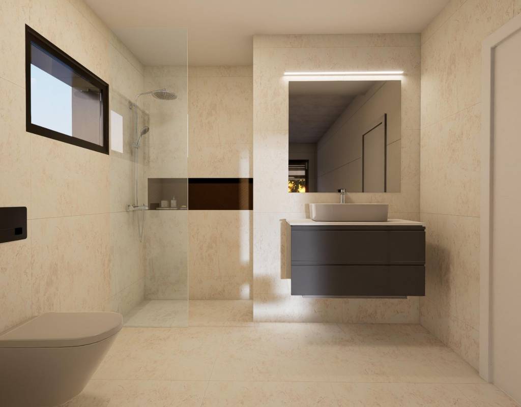 Disse moderne boligene er bygget med sans for detaljer og designet for maksimal komfort. Funksjonene inkluderer sentral klimaanlegg, elektriske persienner og et komplett belysningspakke. Kombinasjonen av kvalitetsmaterialer og smart design skaper lyse og funksjonelle oppholdsrom som forbedrer hverdagen samtidig som de sikrer energieffektivitet.