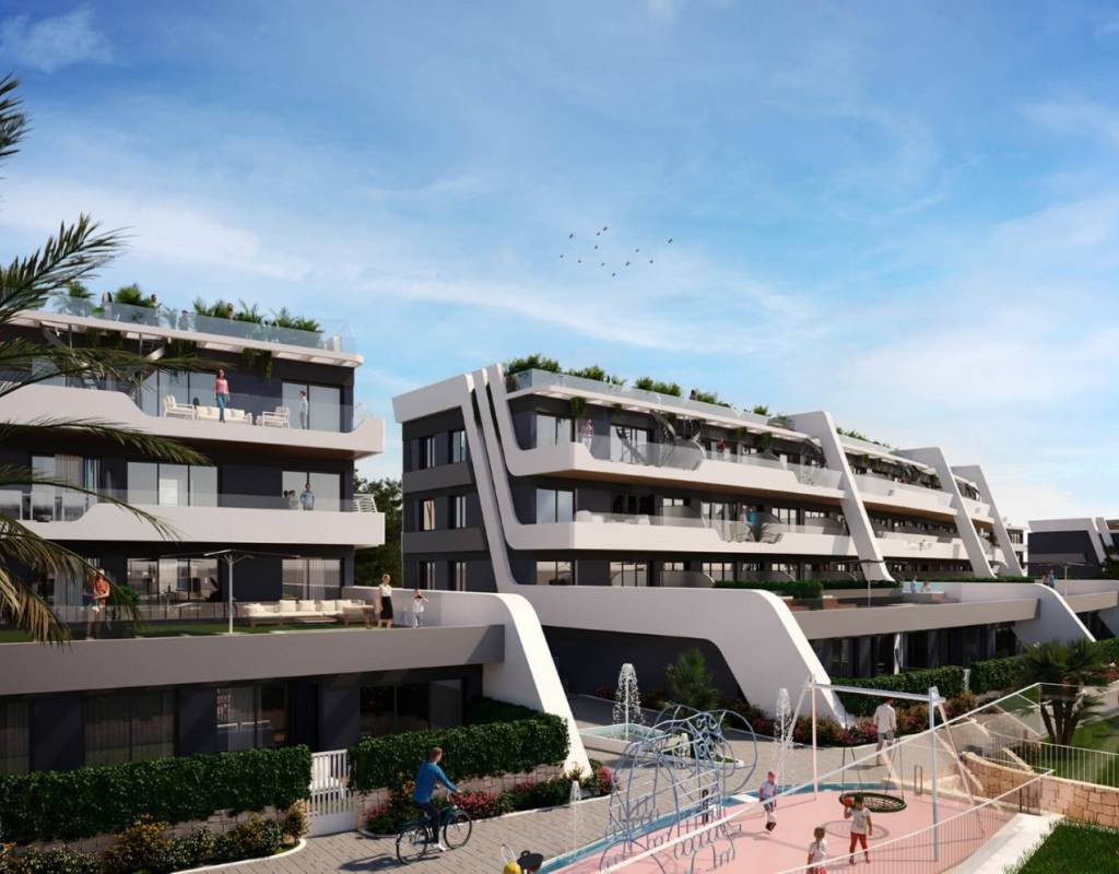 In this residential you can choose between different types of homes that will respond to all kinds of tastes and needs, with something in common: the highest quality and attention to details. This residential complex comprises of three blocks, with a total of 177 apartments, available with the choice of 2 or 3 bedrooms and 2 bathrooms, plus an underground garage with storage rooms. There is also a lift service giving access from the garage to each property. The complex is fully fenced and has more than 300 m2 of communal areas with a children's playground, walking areas and two swimming pools, one of them with direct sea views.