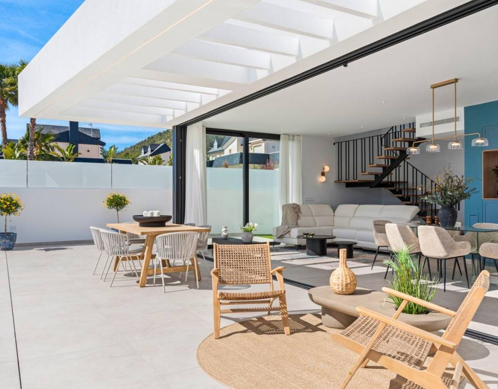 Modern villas build over 3 floors, has 3 bedrooms, 3 bathrooms, guest toilet, open plan modern kitchen with large living/dining room has direct access to the terrace with the pool, fitted wardrobes, basement with garage and storeroom, air conditioning, white goods.