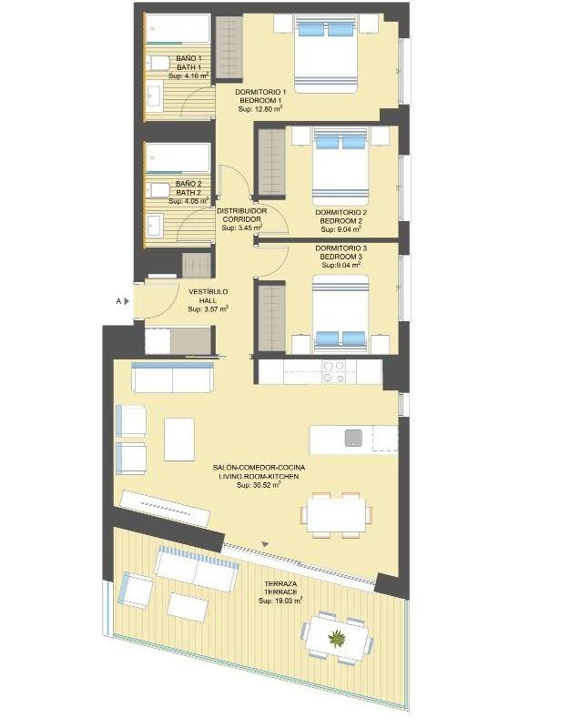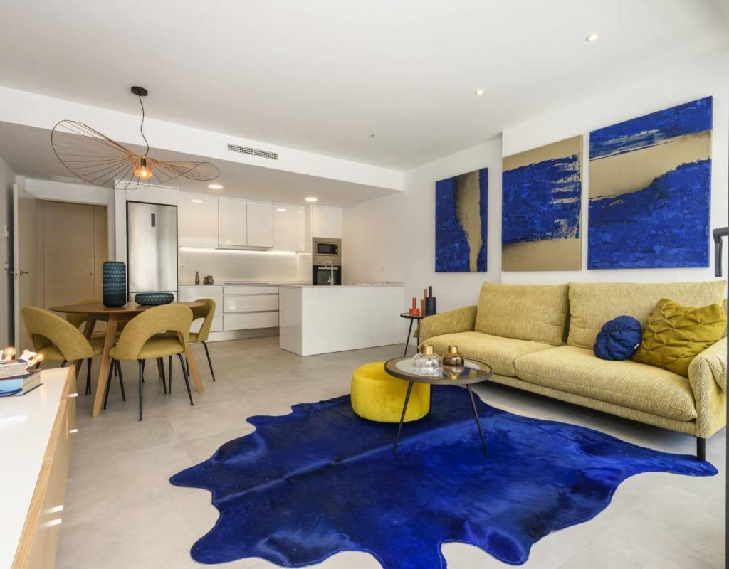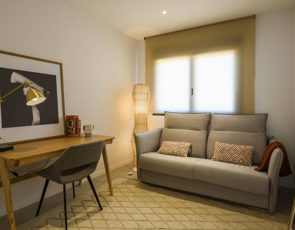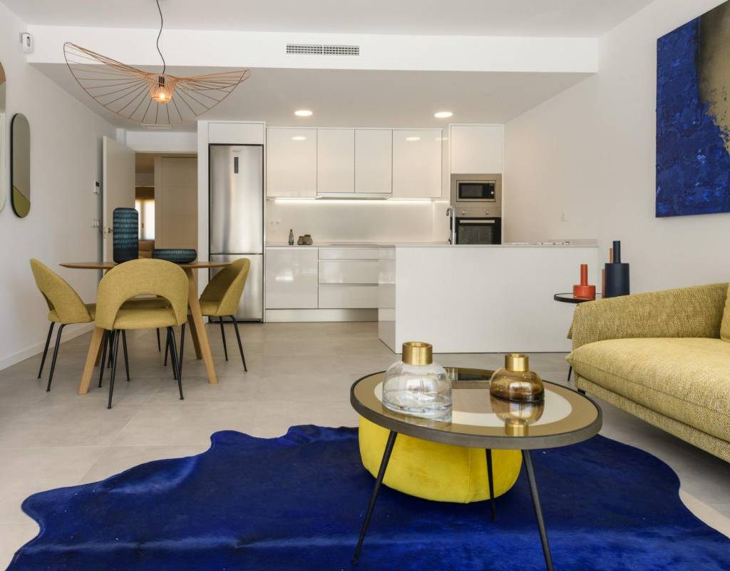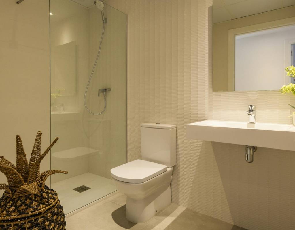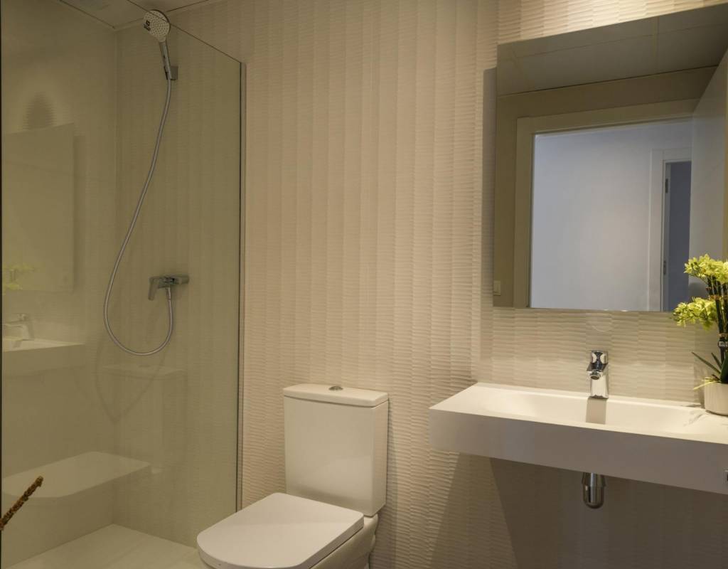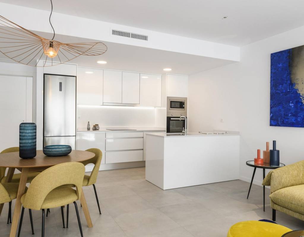 A 3-bedroom flat with a large terrace, a kitchen equipped with modern appliances, the most exclusive details and communal areas designed for the enjoyment of the whole family. Living in this residential is to feel the Mediterranean in every room of the house.
