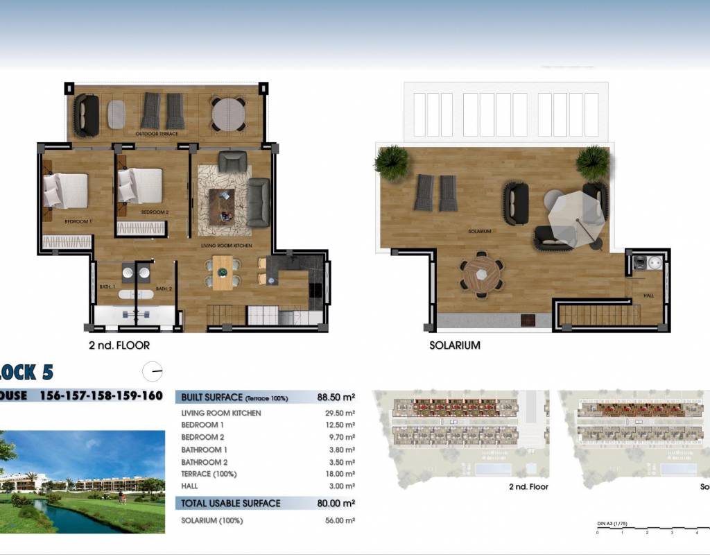 This amazing complex will be formed by 244 apartments with 2 and 3 bedrooms, divided in 8 blocks and 20 private Villas.