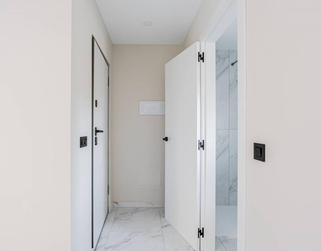 On the ground floor of the house you will find a garage, a leisure room and a fully equipped bathroom. On the first floor of the house you will find a living room, an American-style kitchen fully equipped with high-quality appliances, two bedrooms with built-in wardrobes, and a terrace with wonderful views. On the top floor of the house, the master bedroom with two terraces and a fully equipped bathroom.