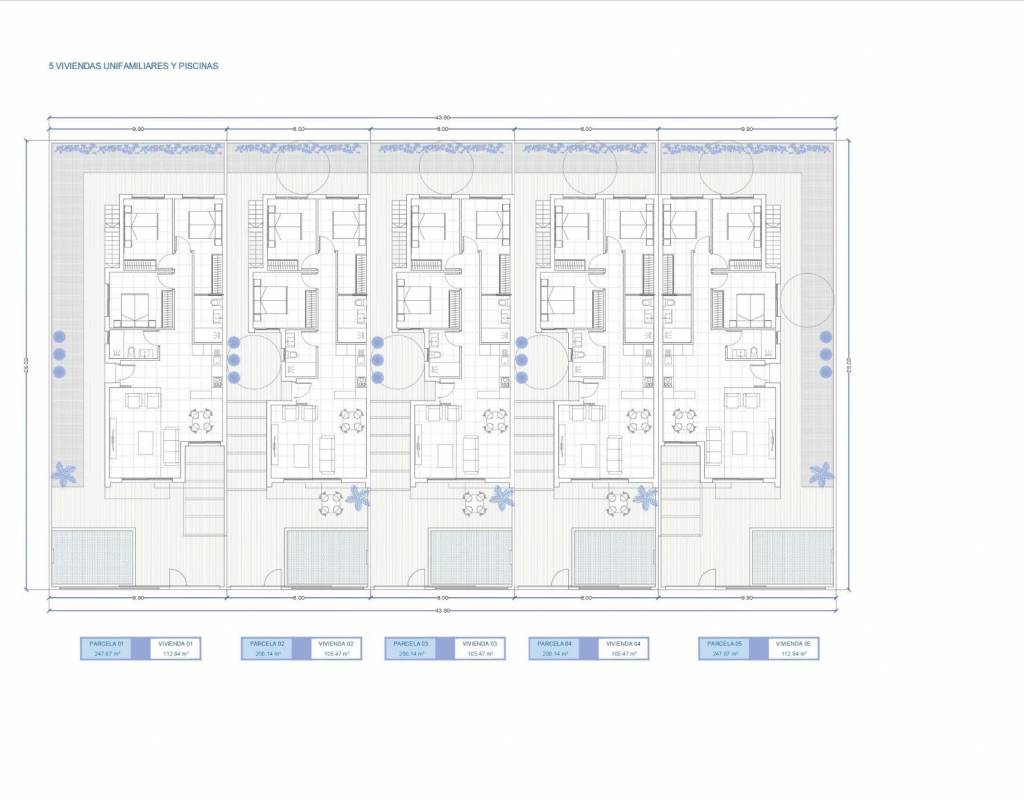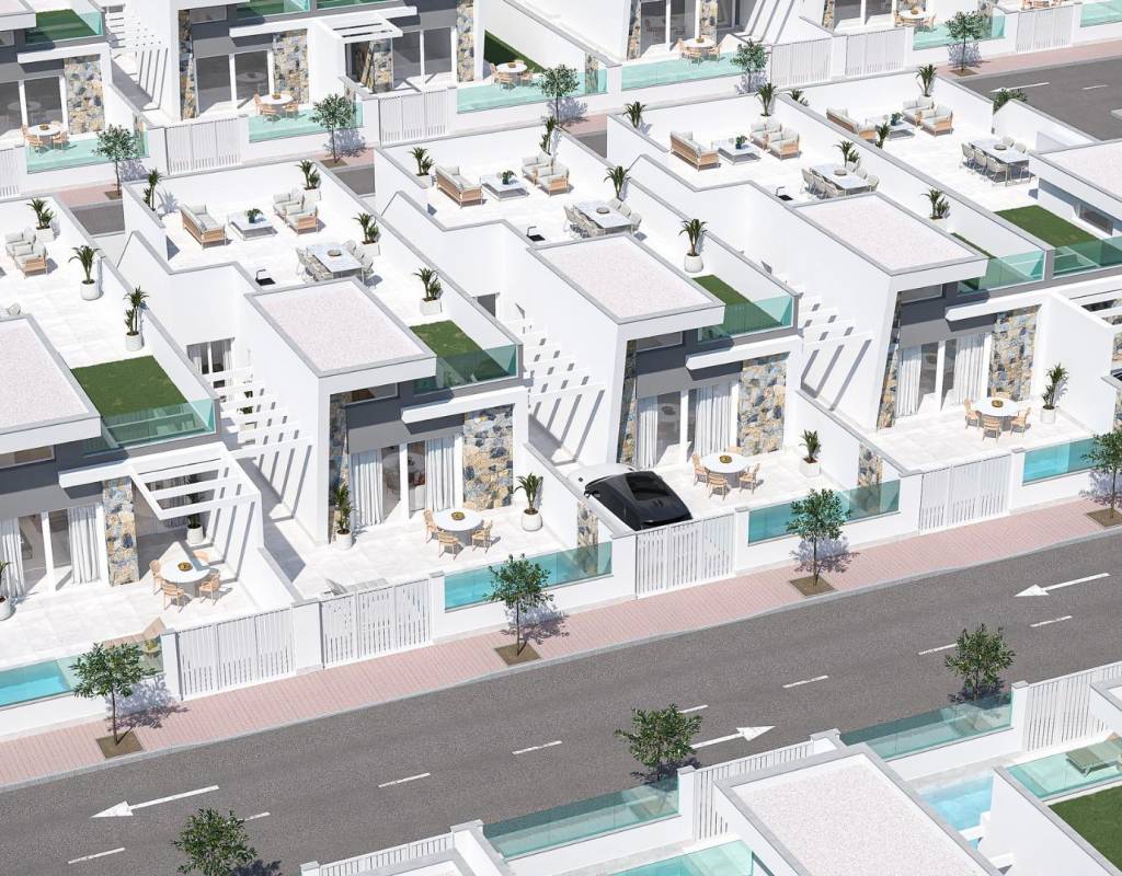 Discover this exclusive residential development of five single-story villas in the charming town of Los Alcázares. Each villa features a private swimming pool with a cascading waterfall, a spacious solarium for year-round sunshine, and modern interiors designed for comfort and style.