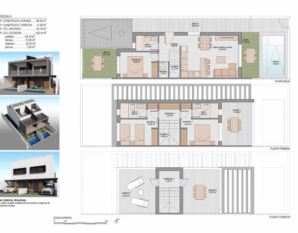 Discover this limited-edition development of only two semi-detached villas located in Santiago de la Ribera, a charming coastal town on the Murcian coast, known for its relaxed lifestyle, clean beaches, and excellent year-round climate. These new homes are situated just 1 km from the shores of the Mar Menor, offering the perfect combination of privacy, comfort, and proximity to essential services and leisure options.