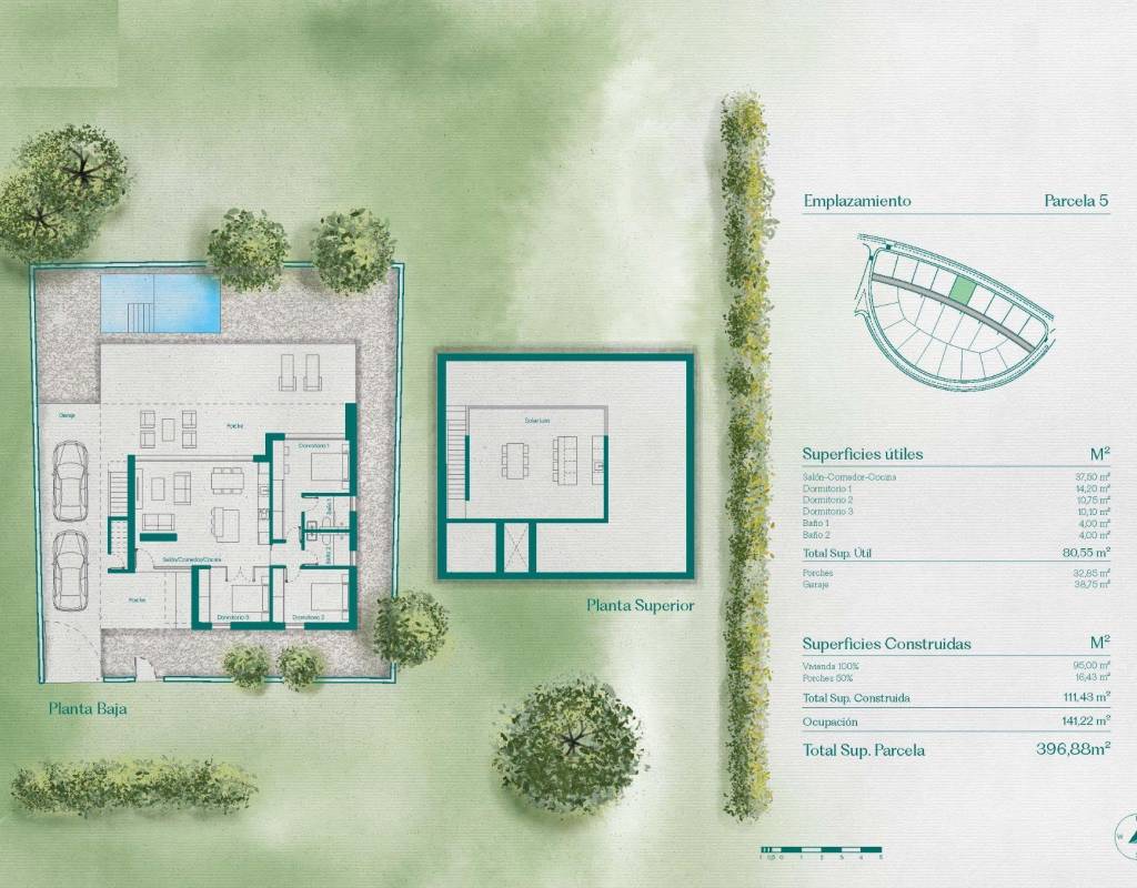 Each property offers a spacious layout with 3 bedrooms and 2 bathrooms on one floor. Private rooftop solarium. With plots starting from 396 square metres and a built area of 111 square metres, these homes offer ample space for indoor and outdoor living.