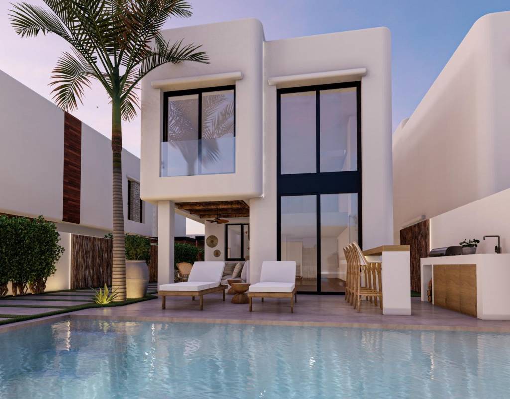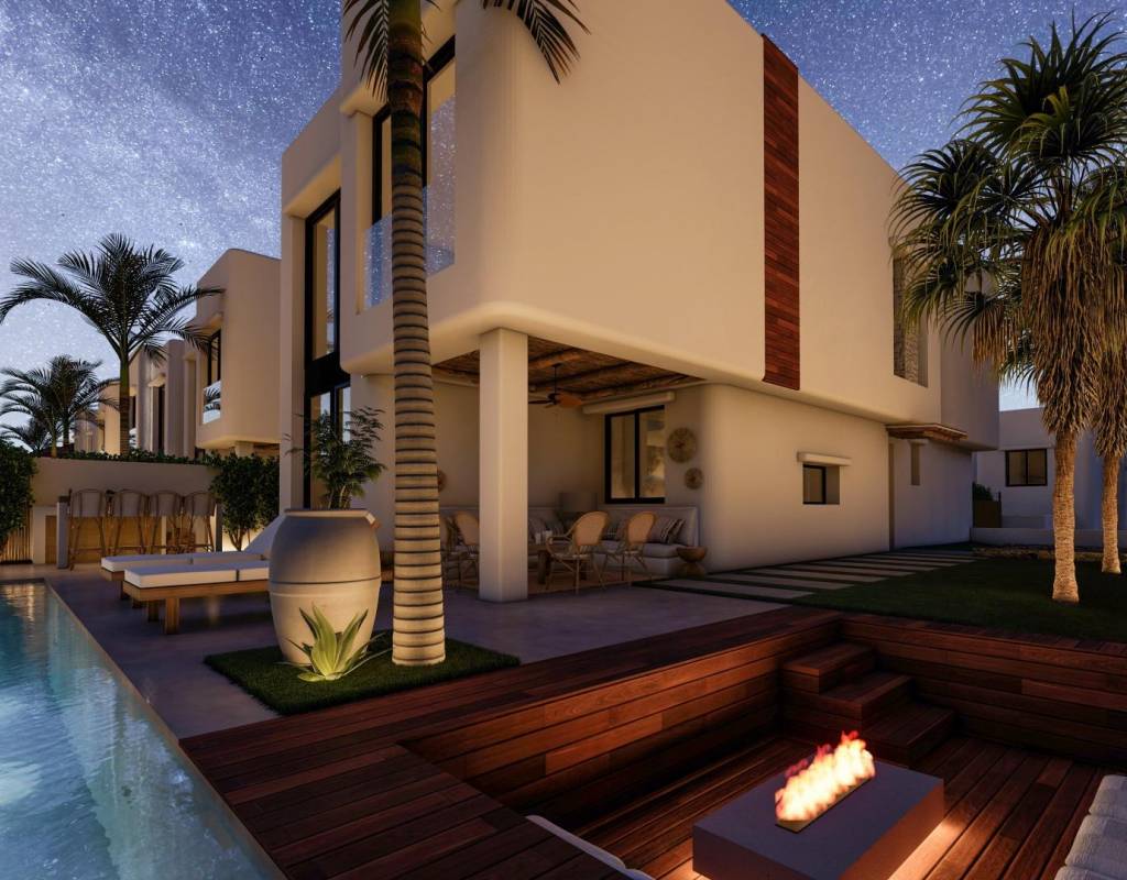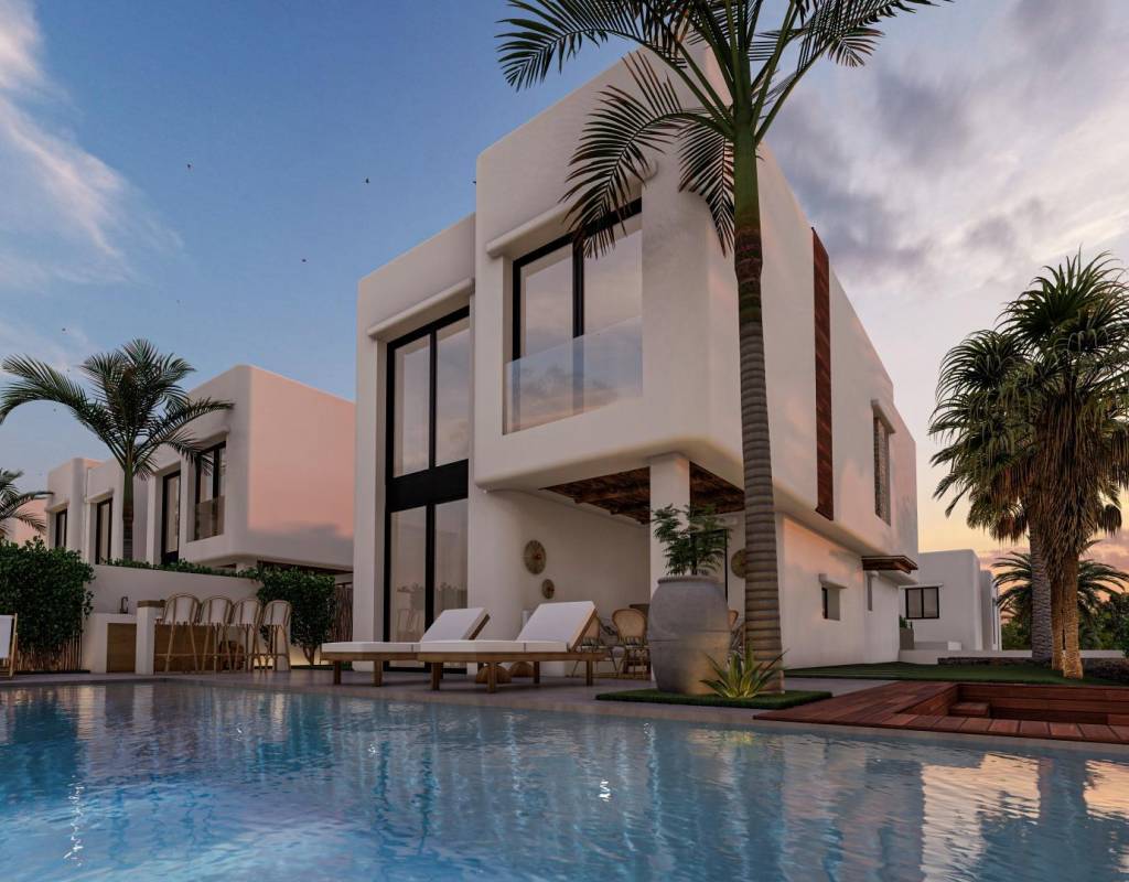 These 17 villas have been thoughtfully designed to combine contemporary comfort with the timeless elegance of Ibizan architecture. White facades, natural woods such as pine and sabina, and stone elements capture the bright Mediterranean light. Each home comes with a private plot, landscaped garden, and a private swimming pool with an integrated jacuzzi. Spacious terraces, a barbecue area, and an outdoor bar create the ideal environment for enjoying the Mediterranean lifestyle year-round.