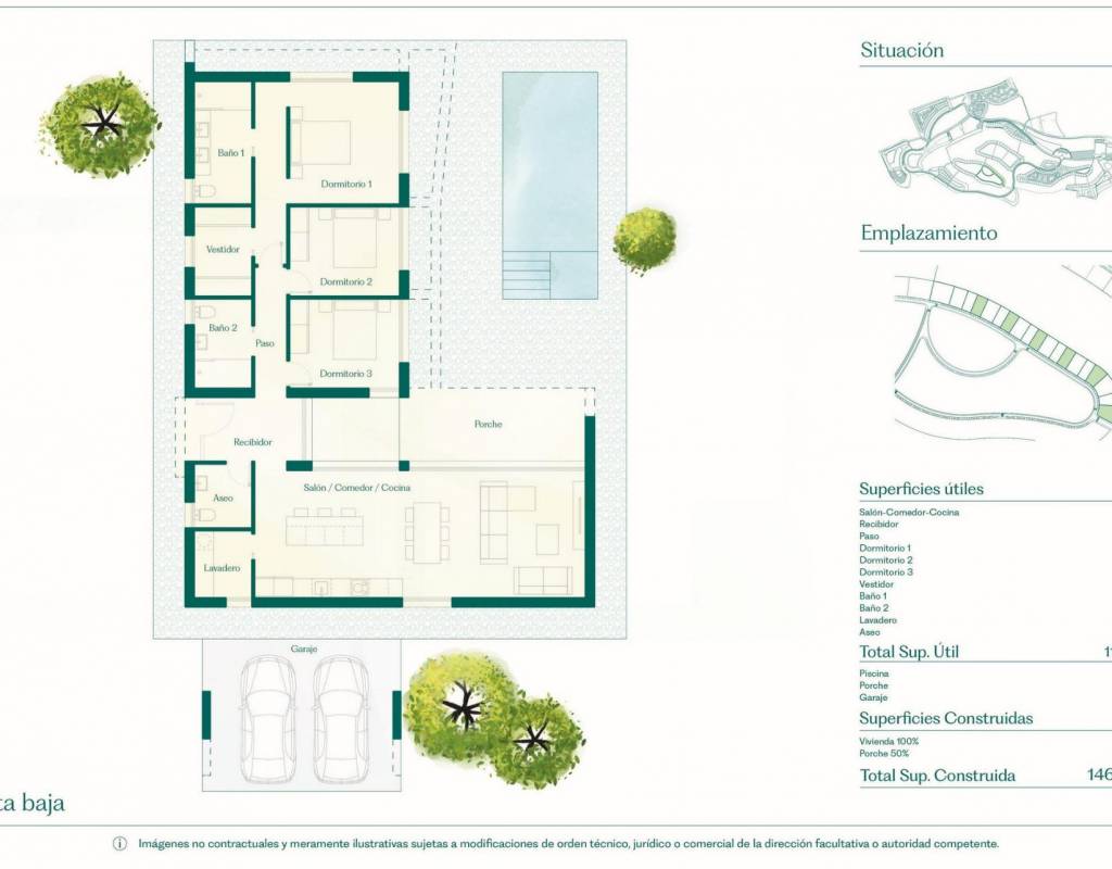 Each property offers a spacious layout with 3 bedrooms, 2 bathrooms, and a guest toilet, across a single or double-level design, depending on the chosen model. With generous plots starting from 700 square meters and a built area of 146 square meters, these homes provide ample space for both indoor and outdoor living.