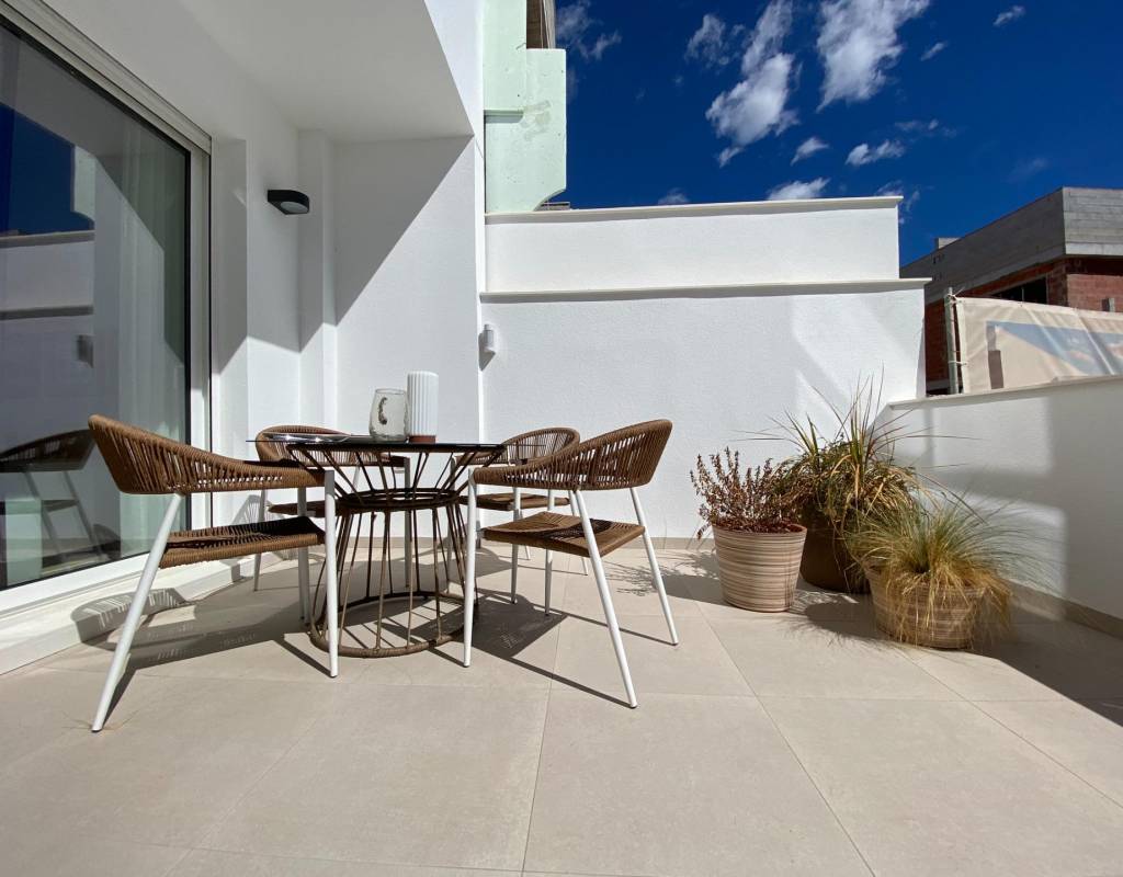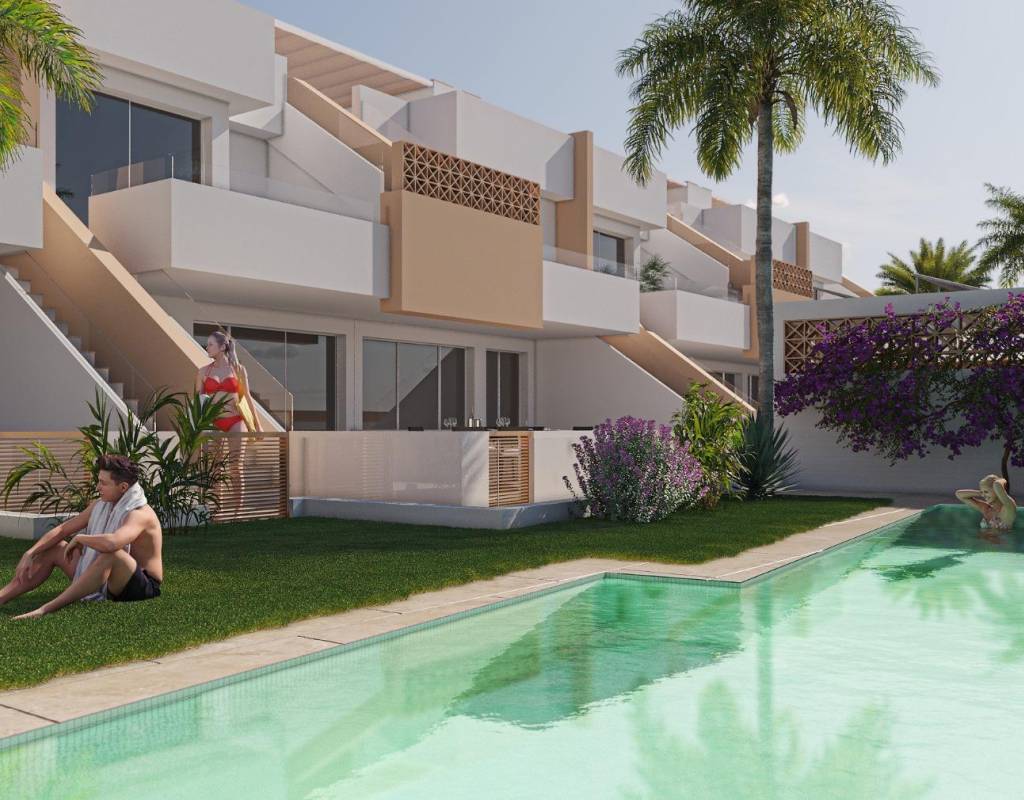 Welcome to a boutique residential complex of 12 new build bungalows located in Pilar de la Horadada, a vibrant coastal town at the southern tip of the Costa Blanca. This prime location offers the perfect blend of tranquil Mediterranean living and convenience, with all essential services, shops, restaurants, and amenities within walking distance. The beautiful sandy beaches of Torre de la Horadada and Mil Palmeras are just 3 km away, ideal for relaxed beach days or water sports.