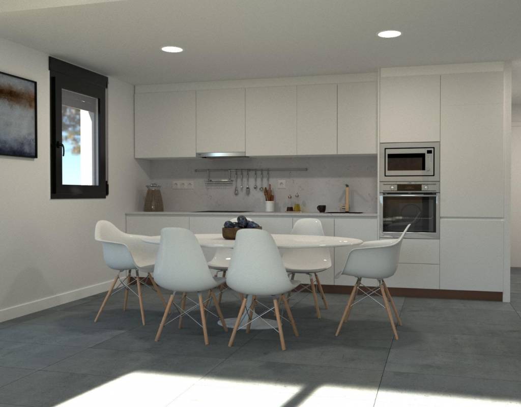These villas stand out for their open plan layout, where the fully equipped kitchen blends seamlessly with the bright living and dining area. Every property includes: