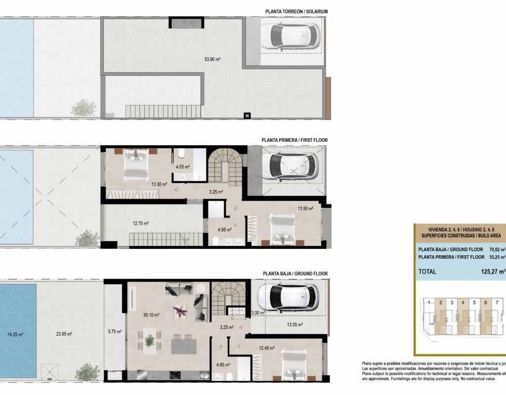 Discover this exclusive complex of 8 brand new townhouses in San Javier, Murcia, designed to offer maximum comfort and a modern lifestyle. Each property has a private swimming pool, terrace, solarium and parking space, providing an ideal space for relaxation and enjoyment all year round.