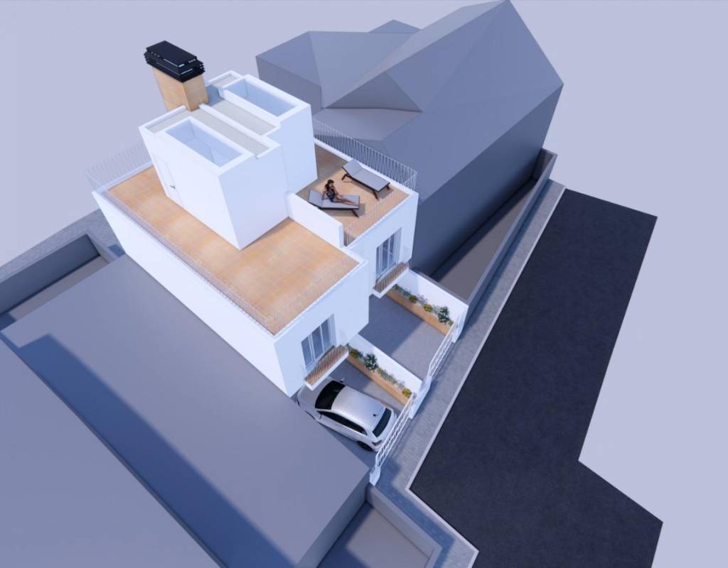 Each townhouse is distributed over two floors plus a private rooftop solarium with open views of the Mediterranean Sea. The ground floor features a bright open plan living dining area with kitchen space, designed to maximize natural light and comfort. This level also includes a full bathroom and direct access to a private garden. The garden area offers flexibility, as it can be used for off road parking or upgraded with a private swimming pool at an additional cost.