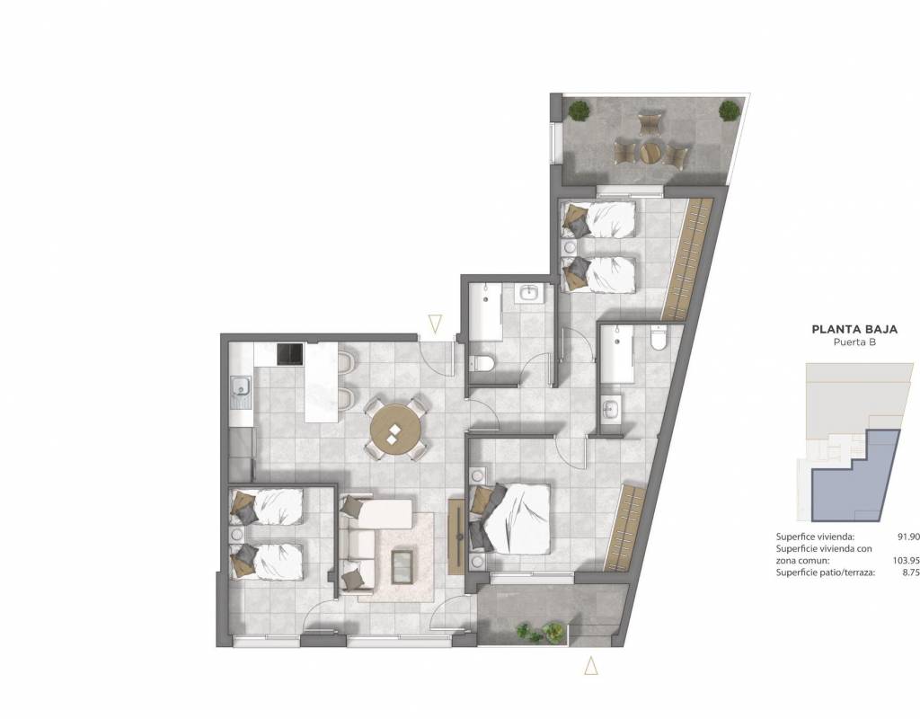 Discover this exceptional new-build residential complex located in the heart of Guardamar del Segura, a charming coastal town renowned for its natural dunes, pine forests, and golden sandy beaches. Ideally situated just 1 km from the beach and within walking distance to shops, restaurants, supermarkets, and leisure services, this project offers the perfect balance of convenience and Mediterranean lifestyle.