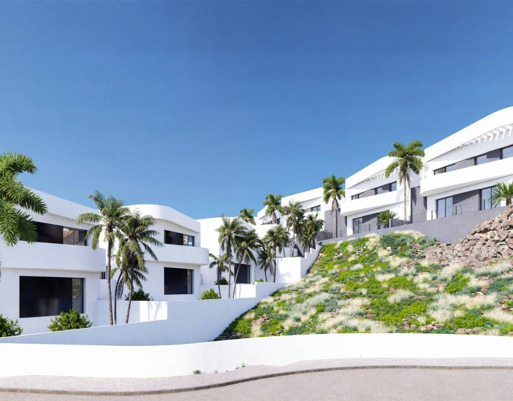 The villas stand out for their elegant Ibiza style design with soft curved lines and bright white finishes that blend perfectly with the natural surroundings. Spacious outdoor areas are designed to enjoy the mild climate all year round, offering ideal spaces for relaxing, entertaining and making the most of outdoor living in a peaceful golf environment.