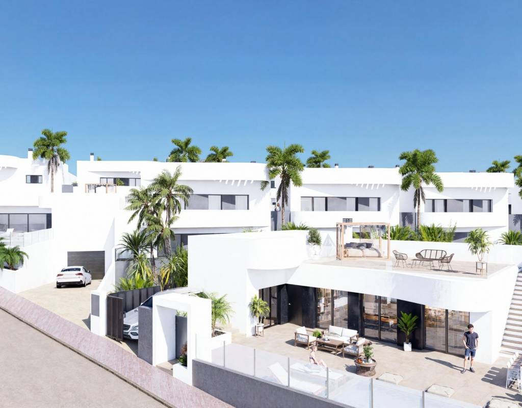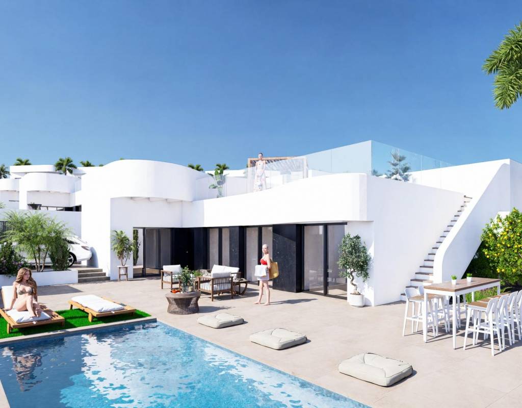 The project offers a wide selection of detached and semi detached villas in three different sizes of approximately 98 m2, 111 m2 or 135 m2. Homes are available on one or two levels and all feature three bedrooms and two bathrooms. The larger models also include a guest toilet. Villas on one level enjoy a spacious private rooftop solarium, while two level homes feature a large open terrace on the upper floor. Some units include a basement and others offer this option at an additional cost. All villas come with a private swimming pool and parking space within the plot.