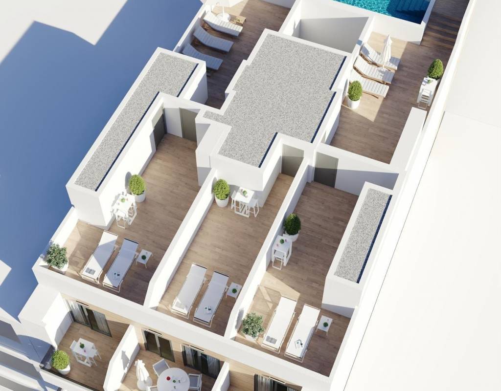 Roof terrace solarium with communal swimming pool