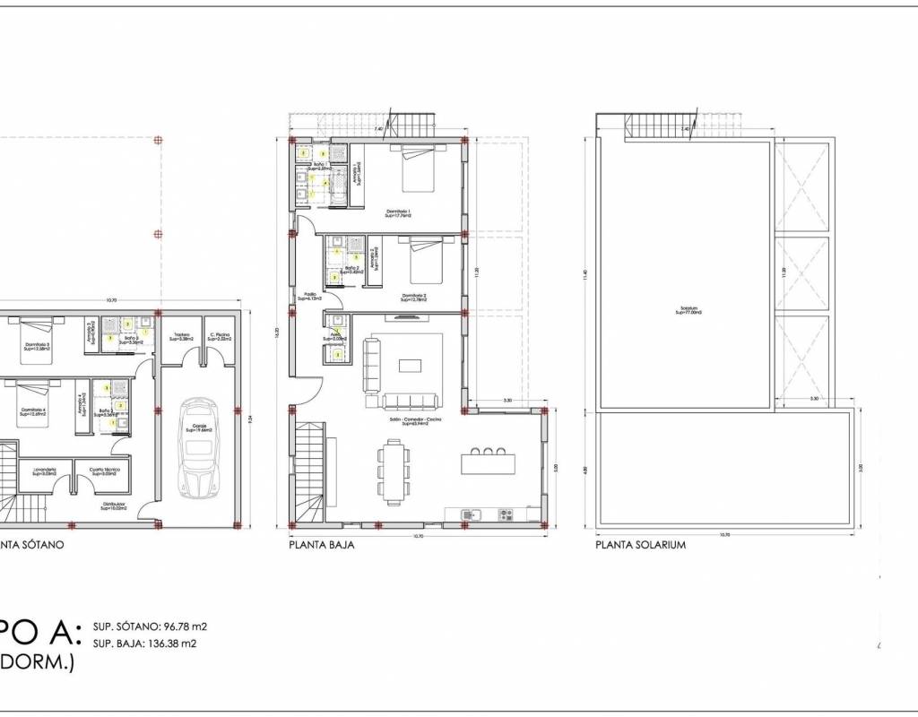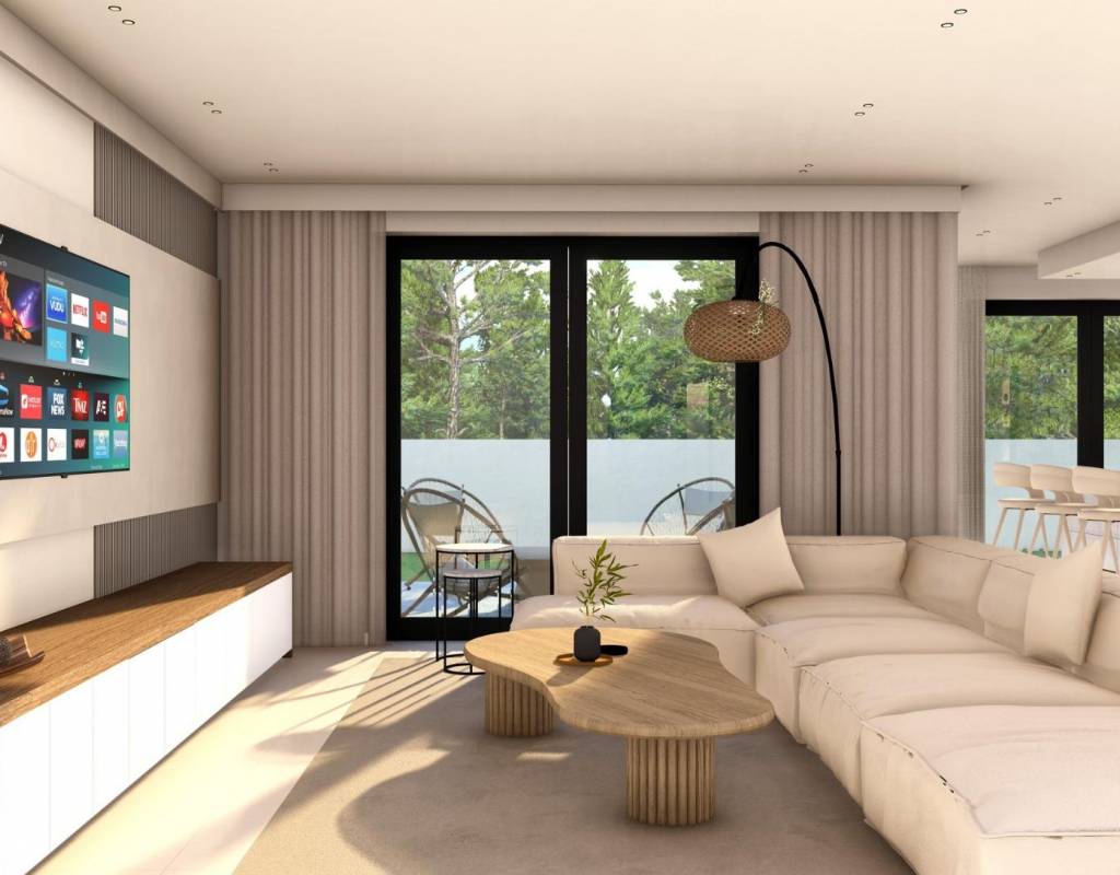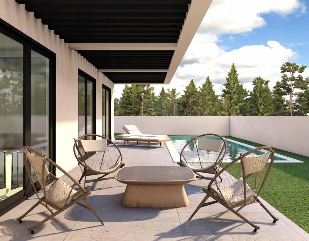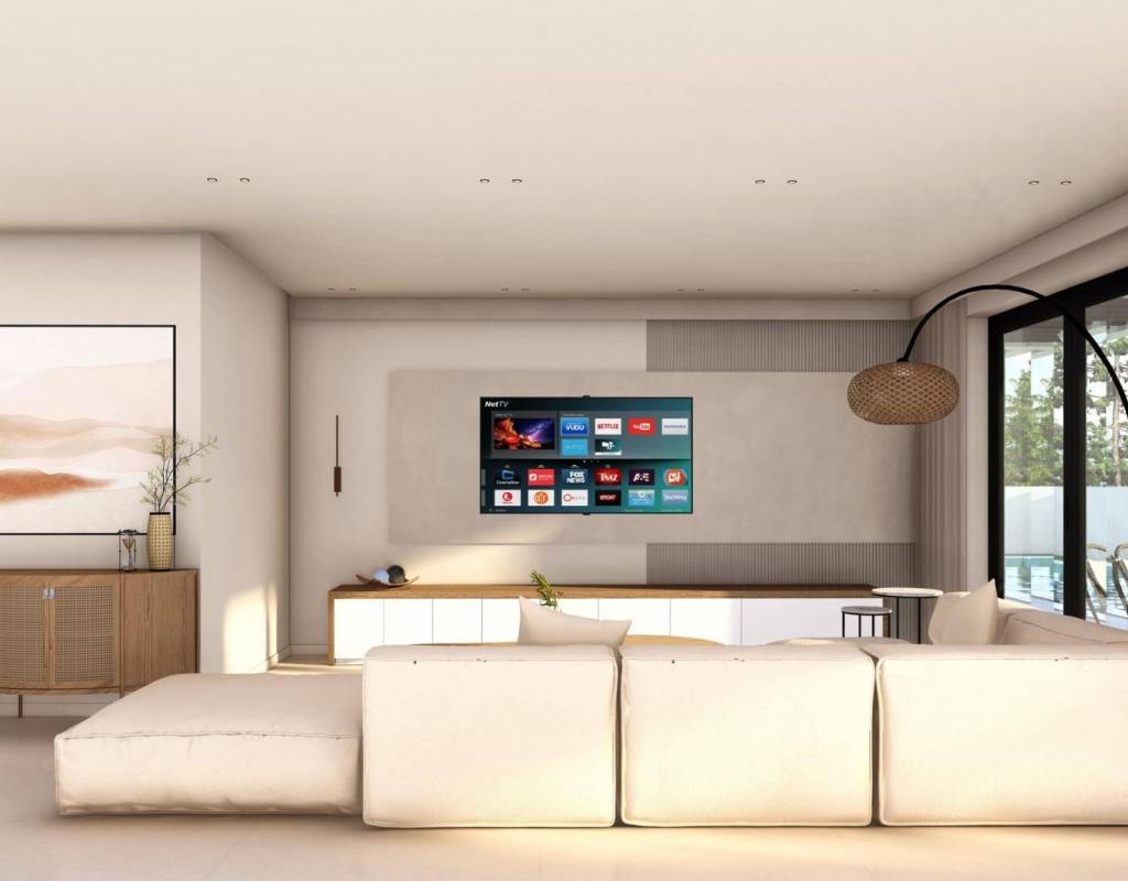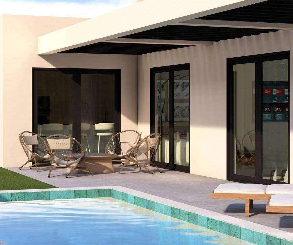 The ground floor features one or two additional en suite bedrooms, a guest toilet and an open plan kitchen connected to the living and dining area, with direct access to the terrace and pool. A rooftop solarium crowns each property, offering panoramic mountain or sea views and the option to install a jacuzzi.