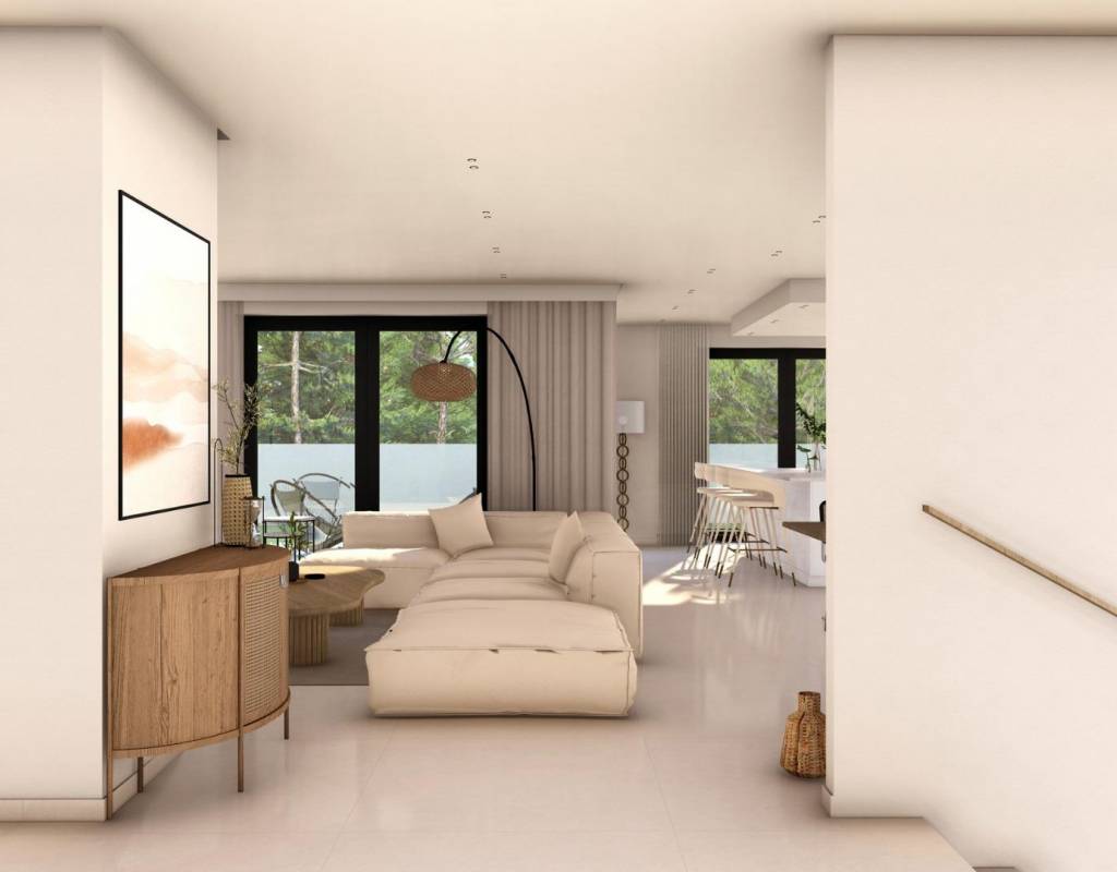The ground floor features one or two additional en suite bedrooms, a guest toilet and an open plan kitchen connected to the living and dining area, with direct access to the terrace and pool. A rooftop solarium crowns each property, offering panoramic mountain or sea views and the option to install a jacuzzi.