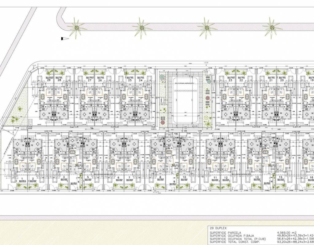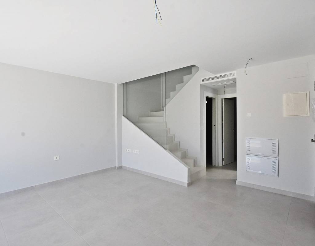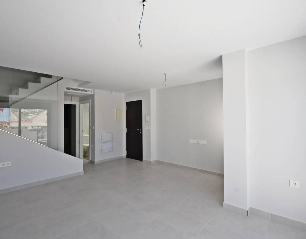 Each villa offers a built area of 101 sqm on a corner plot of 126 sqm, distributed over two floors plus a solarium. On the ground floor you will find a bright living room, an independent kitchen with access to the rear of the plot, one double bedroom and one full bathroom. The first floor features two bedrooms, one with access to two terraces with open views, and the other with an ensuite bathroom, plus an additional family bathroom. The top floor is dedicated to a private solarium of 31 sqm with stunning sea views, perfect for sunbathing, outdoor dining or relaxing with friends.