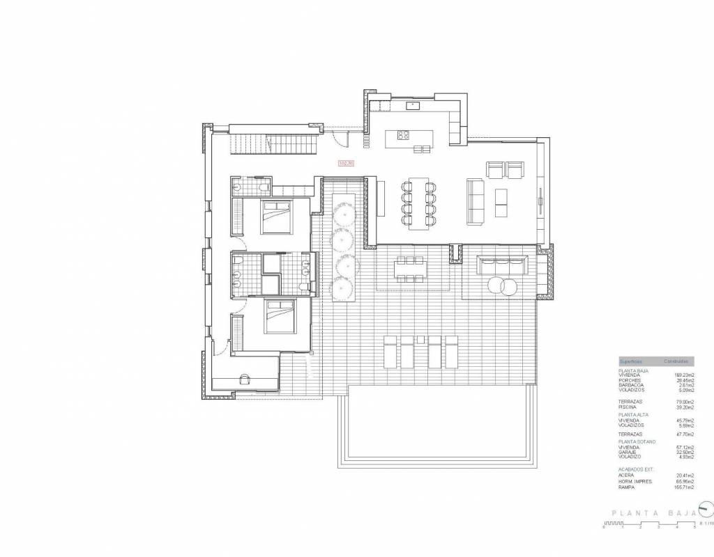 This modern villa is distributed across three carefully planned floors, combining functionality with refined aesthetics.